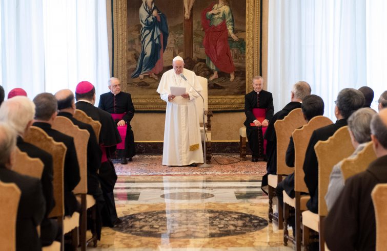 Lo ha detto, a braccio, il Papa, ricevendo un udienza i membri della Commissione teologica internazionale in occasione del 50° anniversario di fondazione. “Oggi si pensa che fare sinodalità è prendersi per mano e andare in cammino, fare festa con i ragazzi, o fare un’inchiesta di opinioni: ‘cosa si pensa sul sacerdozio delle donne?”, ha proseguito Francesco sempre fuori testo: “La sinodalità è un cammino ecclesiale che ha un’anima che è lo Spirito Santo. Senza lo Spirito Santo non c’è sinodalità. E voi avete fatto un bel lavoro per aiutare in questo”. “Il teologo deve andare avanti, deve studiare su ciò che va oltre; deve anche affrontare le cose che non sono chiare e rischiare nella discussione”, ha detto il Papa ancora a braccio: “Questo però fra i teologi. Ma al popolo di Dio bisogna dare il ‘pasto’ solido della fede, non alimentare il popolo di Dio con questioni disputate. La dimensione di relativismo, diciamo così, che sempre ci sarà nella discussione, rimanga tra i teologi – è la vostra vocazione -, ma mai portare questo al popolo, perché allora il popolo perde l’orientamento e perde la fede. Al popolo, sempre il pasto solido che alimenta la fede”. Uno Stato “eticamente etico”, ha ammonito il Santo Padre, “in una liquidità ambigua, pure rischia di portare a un’ingiusta emarginazione delle religioni dalla vita civile a scapito del bene comune”. “Come teologi provenienti da vari contesti e latitudini, voi siete mediatori tra la fede e le culture”, il compito affidato da Francesco ai presenti: “La teologia nasce e cresce in ginocchio! Non si fa teologia da individui, ma nella comunità, al servizio di tutti, per diffondere il gusto buono del Vangelo ai fratelli e alle sorelle del proprio tempo, sempre con dolcezza e rispetto”.