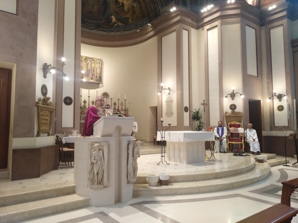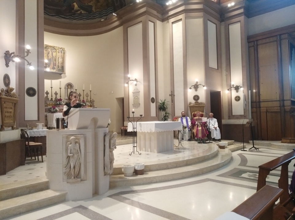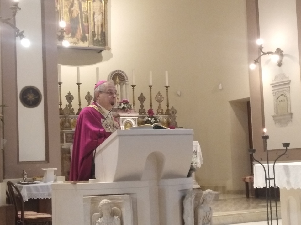 Il vescovo Carlo nell’omelia ha detto: “Ringrazio il preside, gli insegnanti e gli alunni presenti e il sindaco di Cupra che si è unito a noi. Riflettendo sul brano del Vangelo, si presenta come centrale la vicenda del centurione romano che va da Gesù per chiedere di guarire il suo servo. Si tratta di una situazione atipica e un poco strana, visto che a quell’epoca i Romani dominavano le regioni dove viveva Gesù. Il centurione, dunque, il dominatore, va da Gesù, un uomo che vive sotto il suo dominio, per chiedere di guarire un suo servo, un uomo “senza valore”, l’ultimo degli ultimi. Lui era un centurione, aveva cento soldati al suo comando, poteva non importarsene di un servo sul quale aveva il potere di vita e di morte; invece no, chiama Gesù per farlo guarire. Tutto questo ci fa riflettere, ci fa capire, ci fa comprendere cosa sia la carità. E Gesù va da lui senza preoccuparsi di chi lo ha chiamato, Gesù lo accoglie, Gesù accoglie la sua richiesta. Gesù accetta perché il centurione si preoccupa della salute del suo schiavo, perché il centurione dimostra di avere un cuore grande. Questo centurione dice a Gesù: “Non venire, non ti scomodare, ma basta che dici solo una parola…” E anche noi, ogni volta che celebriamo la Messa, ripetiamo la preghiera di questo centurione: “Signore non sono degno…ma di soltanto una parola…”. In questo brano vediamo che il centurione, pur essendo un pagano, ha una fede carica di carità. Non è andato a chiedere a Gesù nulla per sé, ma per il suo servo: il suo è stato un gesto grande, pieno di carità. Anche noi dobbiamo imitarlo, pregare per gli altri, per chi ha bisogno, non sempre e solo per noi stessi.”