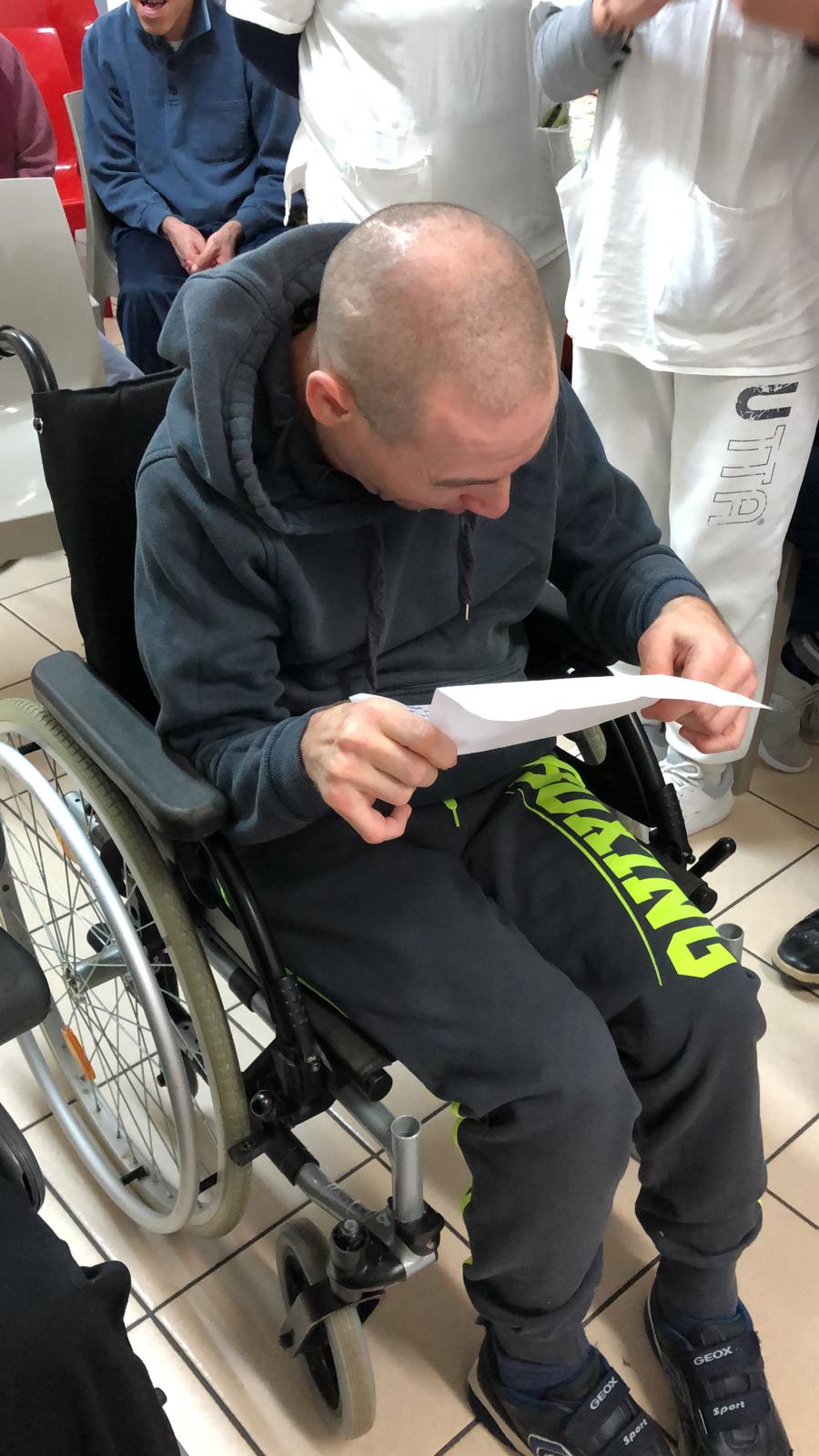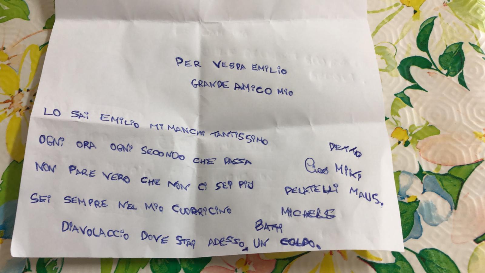 Il momento che ha suscitato più emozione e ha visto scorrere più di una lacrima, è stato quello in cui, durante la preghiera dei fedeli recitata di volta in volta dalle assistenti, si è inserito Michele, uno dei più grandi amici di Emilio. Dalla sua sedia a rotelle e con la voce tremolante, leggeva alcune righe, scritte di proprio pugno.