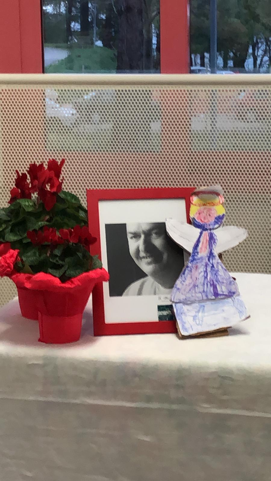 Infine Denni, l’altro suo grande amico e compagno di una vita qui vissuta insieme e anche lui dalla sua sedia a rotelle, dopo un’assidua partecipazione alla messa a voce altisonante e con un’incredibile capacità canora, ci spiegava di aver voluto salutare “Mimo” dedicandogli quell’angelo da lui disegnato che era appoggiato alla foto piazzata sull’altare.