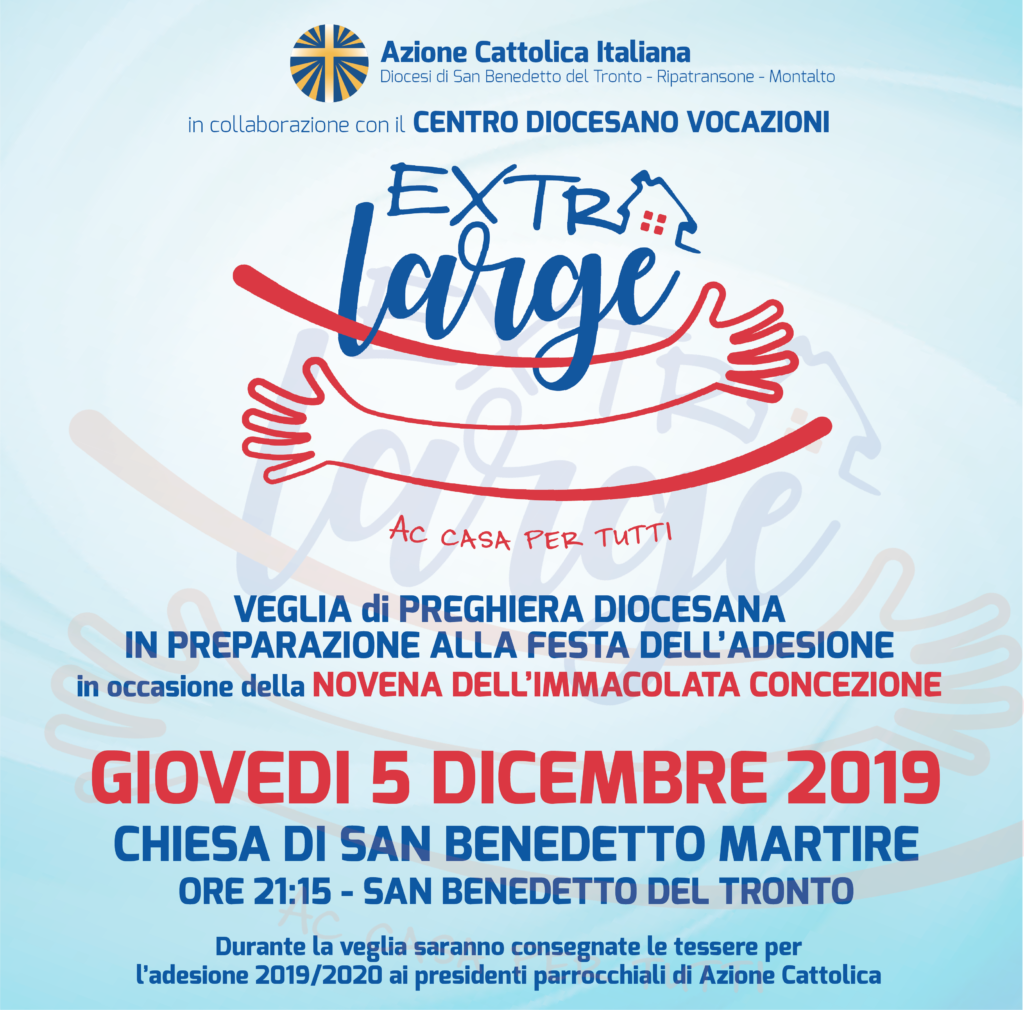 Con queste parole si apre la lettera d’invito dei responsabili AC per la veglia dell’Azione Cattolica Diocesana dal titolo “Extra large! AC casa per tutti.” che si terrà questa sera presso la Parrocchia di San Benedetto Martire.