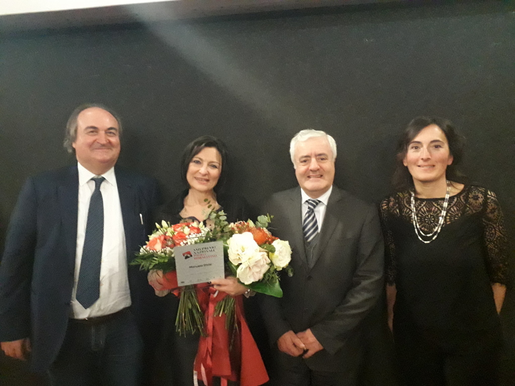 Per la sezione scuola due sono state le personalità premiate ed entrambe del teramano. Prima di tutto il Dirigente dell’Istituto Comprensivo Corropoli – Colonnella – Controguerra Manuela Divisi che da molti anni fornisce ai suoi studenti un’offerta formativa orientata alla legalità. Queste le sue parole: “Per me è un vero onore ricevere questo premio, un premio che non considero assolutamente mio, ma che estendo a tutti gli studenti, ai docenti, ai genitori e agli amministratori dei tre plessi: ci tengo a citare tutti perchè credo che questo premio sia il risultato di una grande sinergia che tutti insieme (scuola, territorio, enti locali) abbiamo messo in campo. È chiaro che questo premio sia anche un onore che accresce il senso di responsabilità verso questi ragazzi: penso che il compito fondamentale della scuola sia quello di formare le nuove generazioni e dare loro gli strumenti necessari per scegliere sempre, con grande libertà, da che parte stare”. È stato poi il turno di Eleonora Magno, Dirigente del liceo Artistico Grue di Castelli la quale ha dichiarato: “Il monumento Il Sorriso realizzato dai miei studenti, pur essendo stato scolpito su una grande e pesante pietra della Maiella, ormai cammina da solo, si sposta di istituto in istituto, di città in città. Questo premio dunque è per voi, ragazzi, affinchè in futuro affidiate all’arte messaggi importanti di speranza.”