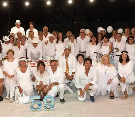 Un anno fa, grazie soprattutto all’impegno della presidente Silvia Egidi, si è organizzato uno splendido evento dal titolo “59 al quadrato -White fifty-nine” . l nati del 1959 di Grottammare e dintorni il 5 Settembre (notasi 5-9 … -2018) alle 19.59 hanno festeggiato i loro 59 anni. Al paese alto di Grottammare tutti di bianco vestiti si sono radunati 59 “diversamente ragazzi” che tra brindisi, cena, musiche e balli dei fantastici anni 70/80/90 hanno tirato fino a tarda notte, nel fantastico scenario della chiesa di Santa Lucia, piazza Peretti e Sant’Agostino.