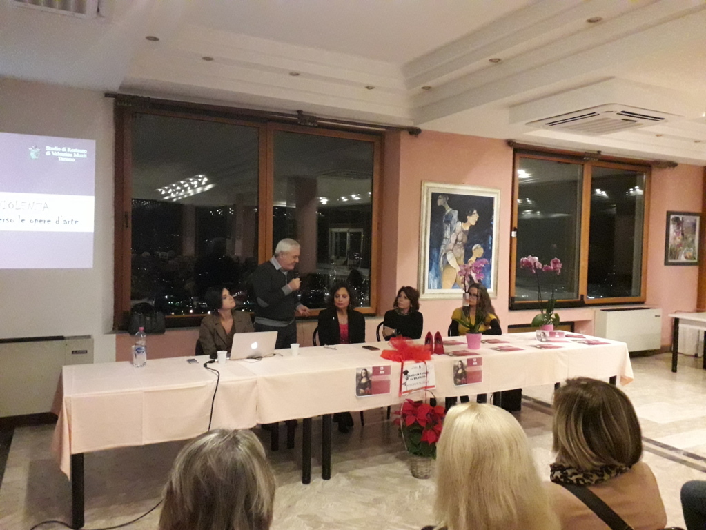 Il primo appuntamento, dal titolo “Donne e violenza: focus attraverso le opere d’arte”, si è svolto Venerdì 29 Novembre presso l’hotel Bellavista ed è stato caratterizzato da un dialogo multimediale molto apprezzato dal pubblico. Essendo l’argomento vasto e ricco di opere d’arte, le stesse sono state organizzate dalla relatrice in sei sezioni distinte, tutte aventi ad oggetto eventi storici realmente accaduti oppure racconti noti della mitologia greca e romana. Per il tema femminicidio, si è partiti da molto lontano e precisamente da un’epigrafe romana riguardante una giovane moglie sedicenne uccisa dal marito, per giungere a L’assassino minacciato di René Magritte e a Qualche piccolo colpo di pugnale di Frida Kahlo. Per il tema violenza sessuale sono stati passati in rassegna tra le altre le opere Giuditta e Oloferne del Caravaggio e di Artermisia Gentileschi, Lo stupro di Edgar Degas e Omicidio con stupro di Otto Dix. Per il tema suicidio di particolare rilievo sono state le citazioni di Guido Reni per La morte di Cleopatra e Frida Kahlo per Il suicidio di Dorothy Hale. Interessanti anche le sezioni rapimento, di cui cito su tutti Il ratto di Proserpina di Gian Lorenzo Bernini, lo sfruttamento, tema la cui opera più famosa probabilmente è rappresentata da Le spigolatrici di Jean François Millet e la discriminazione sociale, tema a cui sono rivolte molteplici opere, a partire da Il peccato originale di Michelangelo Buonarroti fino ad arrivare ai Manifesti di Henry de Toulouse – Lautrec.