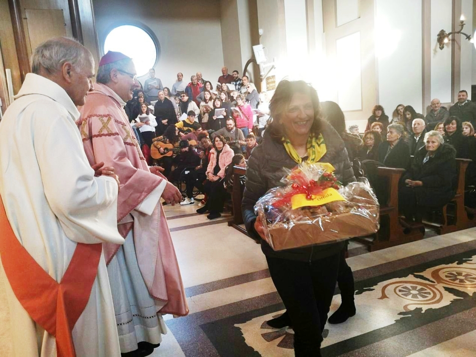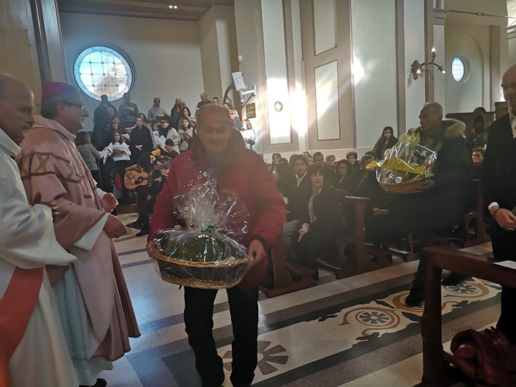Molto particolare il rito dell’Offertorio, nel corso del quale sono stati portati all’Altare prodotti tipici donati da varie sezioni locali della Coldiretti interprovinciale, come quelle di: Grottammare, S. Benedetto, Fermo, Montegiorgio, Offida, Castignano, Castorano, Ripatransone, Massignano, Cupra Marittima, Monteprandone, Acquaviva, Cossignano. Ad esempio: Grottammare, vista la sua eccellenza nel florovivaismo, ha portato alcune piante, Cupra e Massignano degli ortaggi, San Benedetto ancora ortaggi e frutti vari.