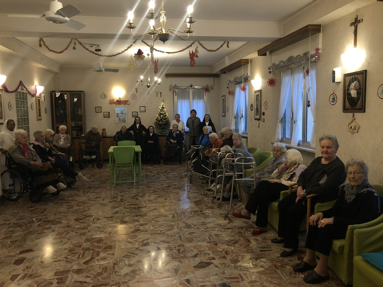 La nostra comunità religiosa è formata da 7 suore che provengono dalla Sardegna, dalla Calabria e dall’India. Sono 11 le persone che lavorano in qualità di Operatrici Socio Sanitarie (OSS) o di Operatrici Socio Assistenziali (OSA) e che si prendono cura delle 28 anziane che qui risiedono. Le nostre assistite sono signore che hanno un’età compresa fra 68 e 97 anni e sono perlopiù donne che provengono dalla nostra zona o che, spostatesi per motivi di lavoro o di famiglia, sono poi tornate nella loro terra di origine.