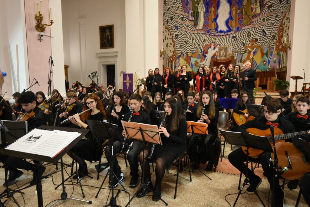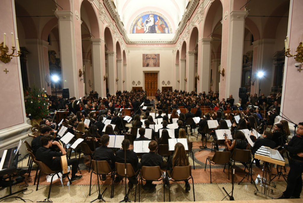 SAN BENEDETTO DEL TRONTO – Cattedrale della Marina gremita per il concerto di Natale “A Christmas present” dell’Isc Centro, che nel bis finale ha visto addirittura il pubblico unirsi alla maxi-orchestra composta da oltre 60 ragazzi e alle corali per cantare tutti assieme Oh Happy Day.