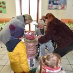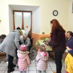 Suscitando la commozione di tutti (ospiti e accompagnatori), essi hanno salutato i “nonni” ospiti portando a ciascuno di loro doni, abbracci e carezze.