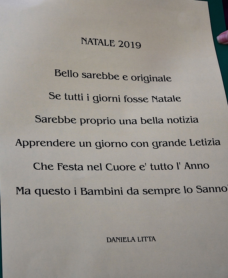 La docente della Scuola dell’Infanzia di Montelparo Daniela Litta, nel dare il via al pomeriggio di auguri per il Natale, con tanto di esibizione scenica dei piccoli allievi, si rivolgeva ai presenti così: