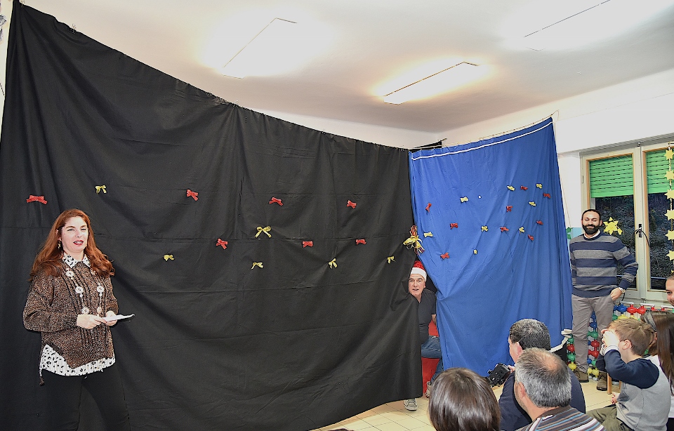 -“Buonasera a tutti e grazie per l’affluenza. Fra pochi istanti assisterete alla recita proposta dalle insegnanti e dai bimbi di questa scuola. I principi ai quali si ispirano le canzoni, i testi, la poesia sono riconducibili a valori universali quali la fratellanza, l’amore, la solidarietà e il senso di appartenenza.