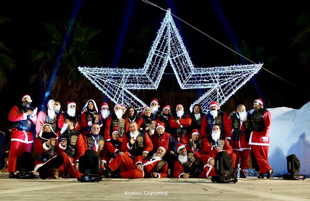 MONTEPRANDONE – Una Domenica spettacolare a Monteprandone dove una trentina di centauri in Harley Davidson vestiti da Babbo Natale hanno dato vita ad un carosello molto suggestivo per le vie del paese.
