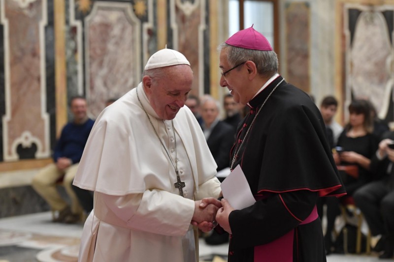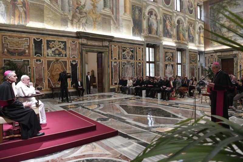 VATICANO – “Sono lieto di incontrarvi e vi saluto tutti cordialmente. Ringrazio il vostro Vescovo per le sue parole, come pure i sacerdoti qui presenti, che accompagnano spiritualmente il vostro lavoro e le vostre famiglie”.