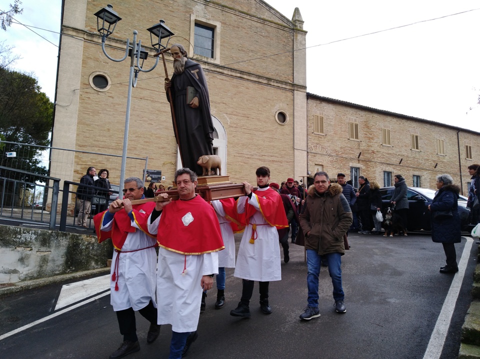 ACQUAVIVA PICENA – Ad Acquaviva Picena domenica 19 gennaio è stato onorato con devozione sant’Antonio Abate. La festa è iniziata, si può dire, giorni fa con una questua itinerante per tutto il paese, i Cantori di sant’Antonio hanno girato in lungo e in largo per raccogliere offerte che poi serviranno per offrire il pranzo tradizionale agli anziani di Acquaviva, il prossimo 22 marzo. La generosità della gente acquavivana e la devozione a questo santo si è toccata con mano. Varie sono state anche le cene fraterne dell’associazione “San Francesco” che si occupa dell’organizzazione. La festa di domenica ha visto una grande partecipazione alle Messe in onore del santo e alla processione, durante la processione il parroco don Pierluigi ha benedetto le campagne e gli animali portati dai fedeli.