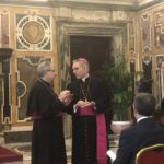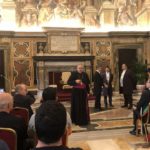 Il Santo Padre è entrato nella Sala Clementina alle 12.30, accompagnato da Mons. Georg Gänswein, Prefetto della Casa Pontificia e Segretario Particolare del Papa Emerito Benedetto XVI, e da un cerimoniere.