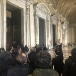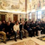 Raggiunta la Città Eterna, il gruppo si è diretto verso la Città del Vaticano, dove, dopo i controlli di rito e l’attesa davanti al Portone di Bronzo, è stato introdotto da una Guardia Svizzera nel Palazzo Apostolico. Durante il tragitto i pescatori non hanno potuto fare a meno di stare col naso all’insù per ammirare stucchi e affreschi, ma lo stupore è divenuto massimo quando sono entrati nella Sala Clementina.