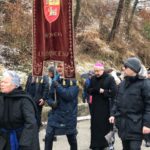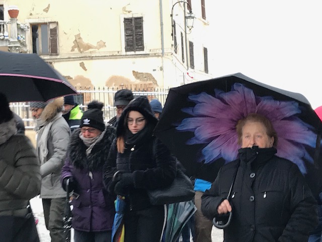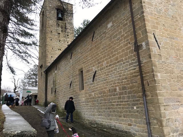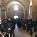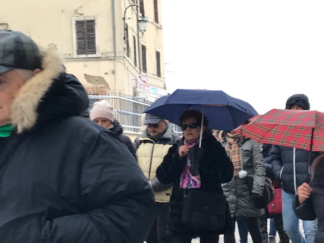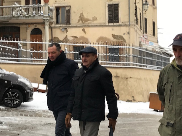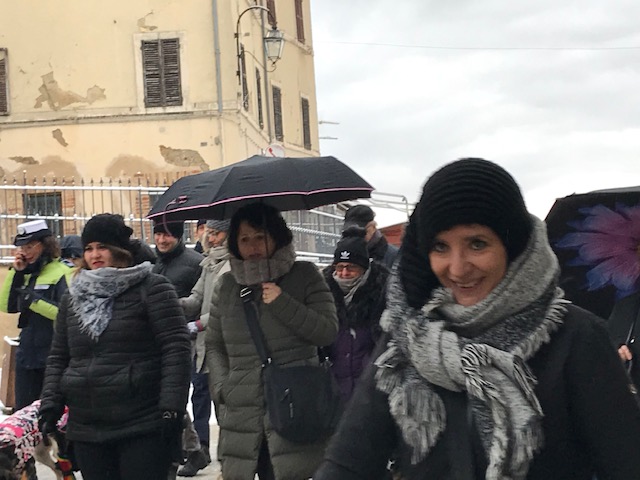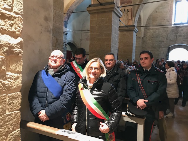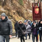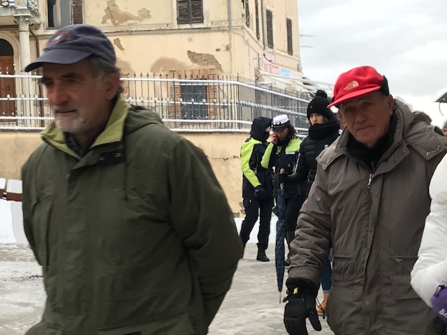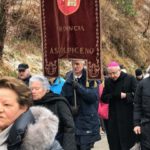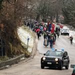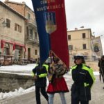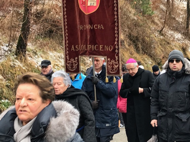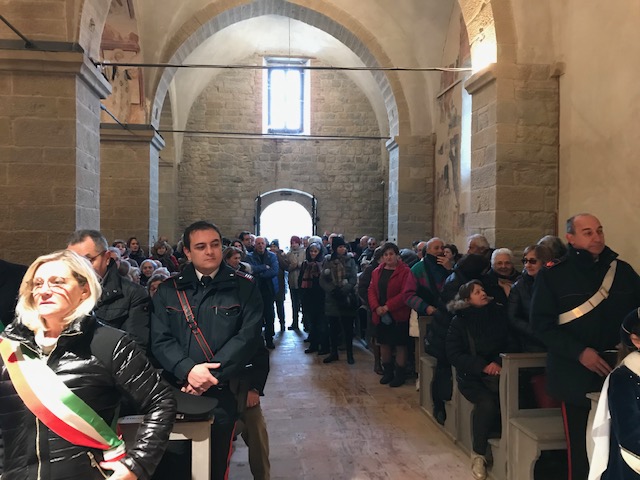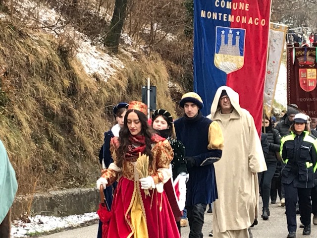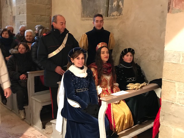 MONTEMONACO – La tempra della gente di Montemonaco non si è smentita nel rinnovato appuntamento in onore di San Sebastiano. In tantissimi oggi, 20 gennaio, hanno sfilato dalla piazza del paese fino alla chiesa di Santa Maria in Casilicchio, nella frazione Tofe, in barba ai 4 chilometri percorsi a piedi e alle temperature al di sotto dello zero. In testa al corteo, accanto ai gonfaloni del Comune e della Provincia di Ascoli, c’erano il sindaco Francesca Grilli, il presidente della Provincia Sergio Fabiani, il presidente del Bim Tronto Luigi Contisiciani e diversi rappresentanti istituzionali e delle forze dell’ordine dei paesi limitrofi, tra cui Michele Franchi vicesindaco di Arquata. Insieme con loro, i Vigili Urbani di Montemonaco e dintorni, tra le prime file o mischiati tra i devoti. Perché San Sebastiano non è solo il Santo che protegge le comunità dalle disgrazie, è anche il protettore della Polizia Municipale. Questa tradizione a Montemonaco affonda le radici nel 1600, quando gli abitanti andarono per la prima volta in pellegrinaggio dal paese fino alla chiesa di Tofe, per ringraziare San Sebastiano di averli protetti dalla peste. Da allora non ci sono stati venti, pioggia, nevone e neppure terremoti ad impedire una festa rimasta nel tempo molto cara ai montemonachesi.