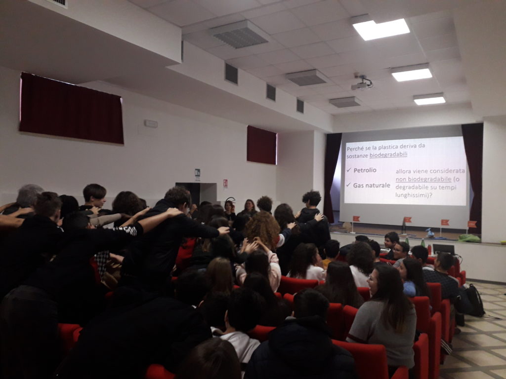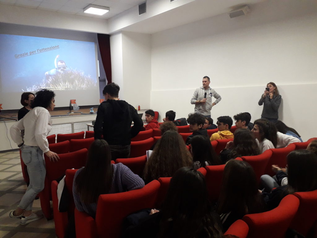 Notevole anche il gradimento palesato dalla Prof.ssa Manuela Valleriani: “Come referente di Professione Giornalista, posso dirmi molto soddisfatta dell’incontro di oggi, in cui la comunicazione ha incontrato l’educazione ambientale attraverso due progetti che il nostro Istituto porta avanti e che quest’anno abbiamo deciso di far dialogare. Professione Giornalista, in particolare, ha come scopo proprio quello di sviluppare nei ragazzi il pensiero critico e l’ambiente è il tema che quest’anno sembra servire proprio a questa finalità. La presa di coscienza che ciascuno può nel proprio piccolo attuare dei comportamenti per contribuire a salvare il nostro pianeta e quindi noi stessi, ma soprattutto la diffusione di una mentalità ecologica può avvenire soltanto attraverso un’informazione che sia corretta e soprattutto che si basi su fonti accreditate. È importante generare nei ragazzi la capacità di sapersi orientare nell’ambito dell’informazione, sapendo distinguere le notizie vere da quelle false. Questo ovviamente vale anche in ambito scientifico e credo che la presenza oggi di un esperto qualificato in materia, quale il Dott. Degiovanni, abbia davvero contribuito non solo ad arricchire la conoscenza dei ragazzi, oltre che di noi adulti, sul problema attuale dell’inquinamento dei mari dovuti alle plastiche, ma anche in generale a far riflettere sull’emergenza ambientale.”