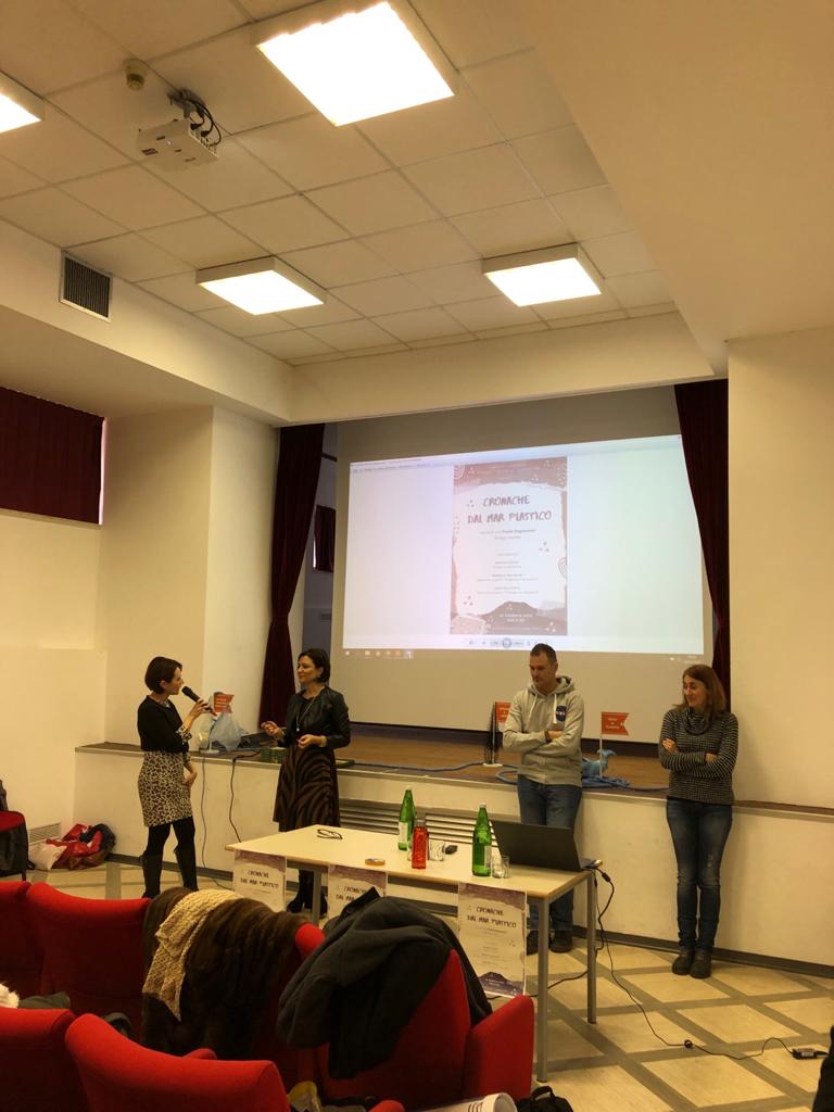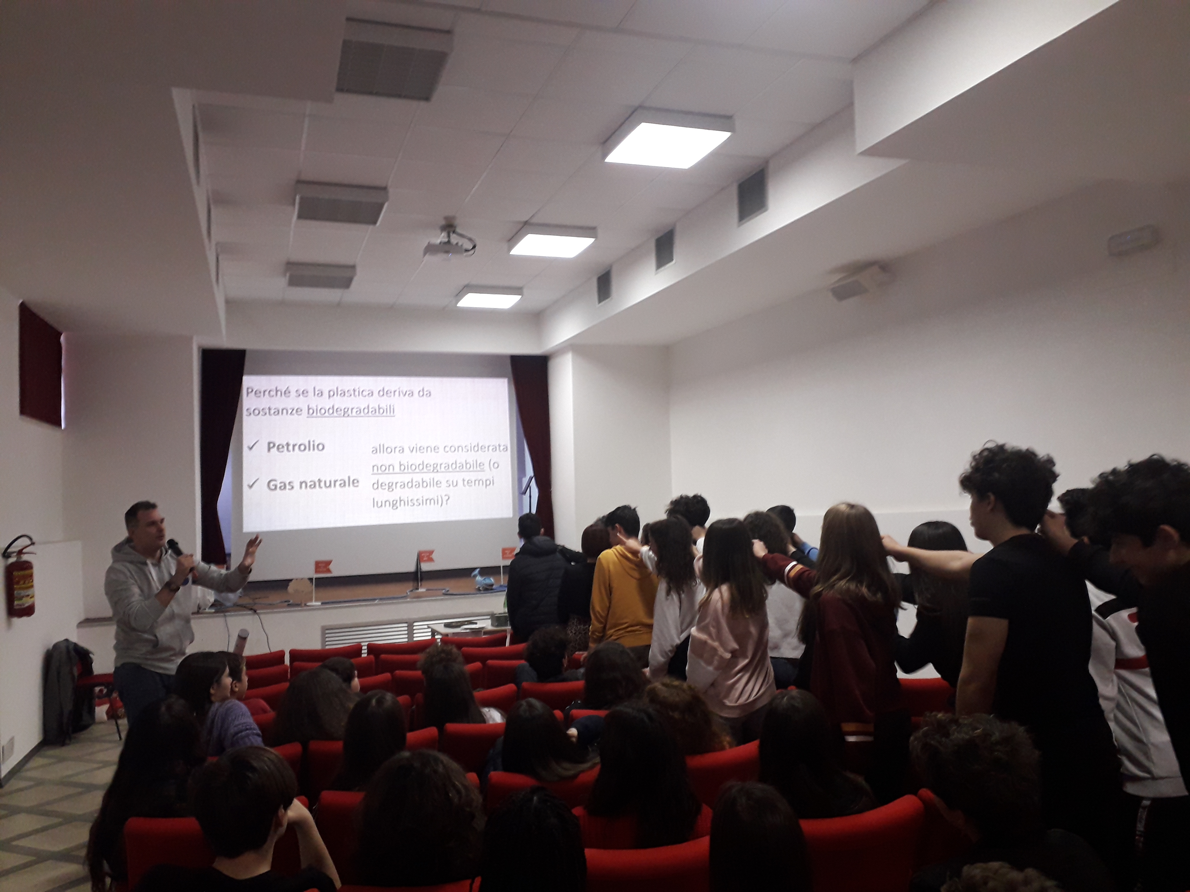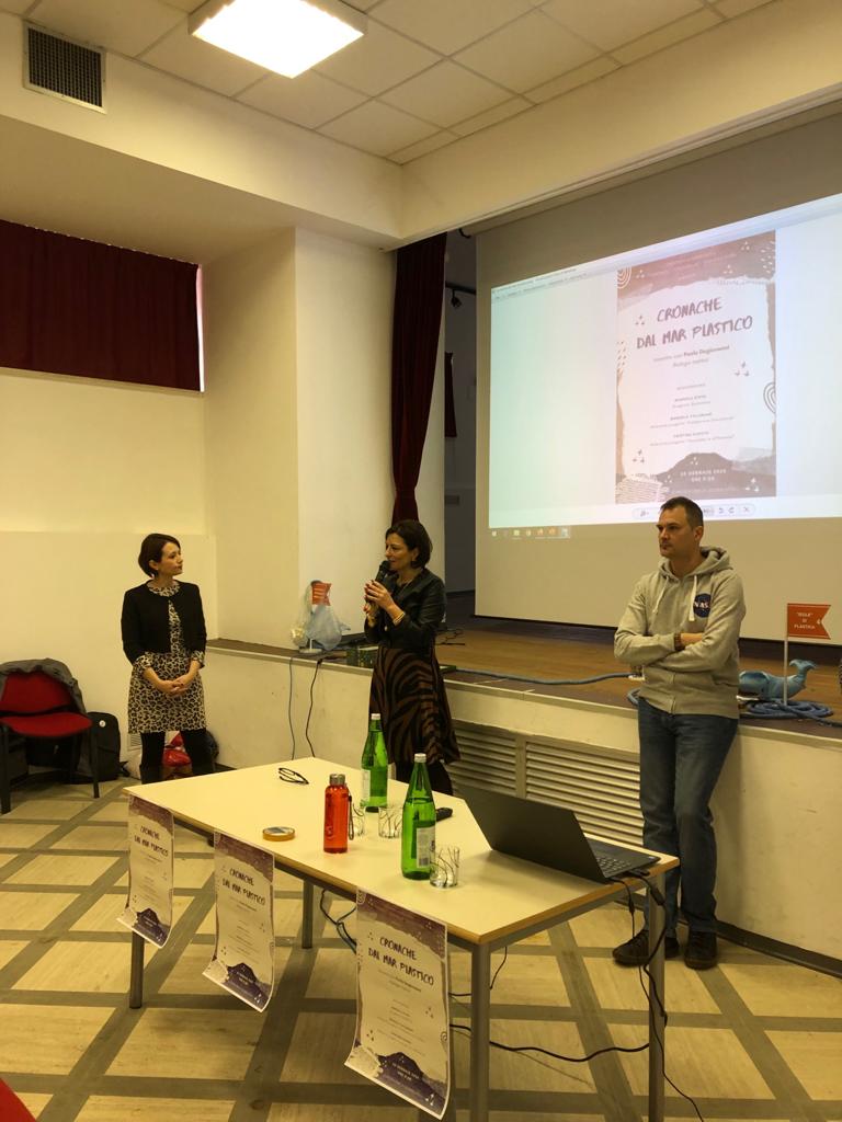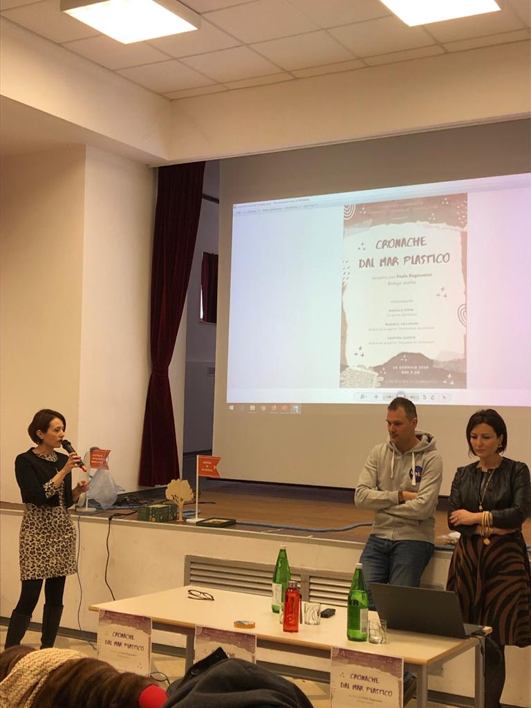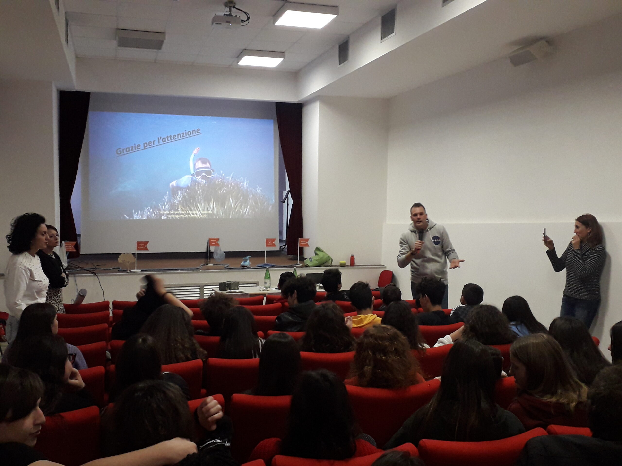Notevole anche il gradimento palesato dalla Prof.ssa Manuela Valleriani: “Come referente di Professione Giornalista, posso dirmi molto soddisfatta dell’incontro di oggi, in cui la comunicazione ha incontrato l’educazione ambientale attraverso due progetti che il nostro Istituto porta avanti e che quest’anno abbiamo deciso di far dialogare. Professione Giornalista, in particolare, ha come scopo proprio quello di sviluppare nei ragazzi il pensiero critico e l’ambiente è il tema che quest’anno sembra servire proprio a questa finalità. La presa di coscienza che ciascuno può nel proprio piccolo attuare dei comportamenti per contribuire a salvare il nostro pianeta e quindi noi stessi, ma soprattutto la diffusione di una mentalità ecologica può avvenire soltanto attraverso un’informazione che sia corretta e soprattutto che si basi su fonti accreditate. È importante generare nei ragazzi la capacità di sapersi orientare nell’ambito dell’informazione, sapendo distinguere le notizie vere da quelle false. Questo ovviamente vale anche in ambito scientifico e credo che la presenza oggi di un esperto qualificato in materia, quale il Dott. Degiovanni, abbia davvero contribuito non solo ad arricchire la conoscenza dei ragazzi, oltre che di noi adulti, sul problema attuale dell’inquinamento dei mari dovuti alle plastiche, ma anche in generale a far riflettere sull’emergenza ambientale.”