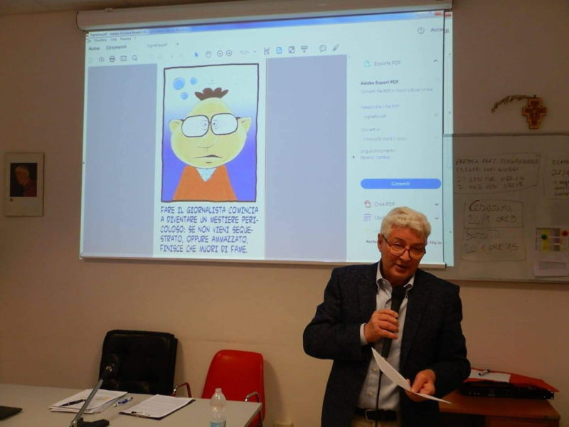 Il passaggio del Papa ci riguarda un po’ tutti: “In un’epoca dove la falsificazione si rivela sempre più elevata, raggiungendo livelli esponenziali, abbiamo bisogno di sapienza per raccogliere e creare racconti veri, belli e buoni, abbiamo bisogno di coraggio per respingere quelli falsi e malvagi, abbiamo bisogno di pazienza e discernimento”. Questi sono elementi sicuramente importanti, sapienza, coraggio, pazienza e discernimento. Tradotto in termini molto attuali significano: sapienza, cioè dobbiamo essere sempre più preparati in questa professione, gli incontri di formazione rientrano in questa logica: dobbiamo tornare ad avere quella credibilità che ci permette di avere quella autorevolezza che ci aspetta. Coraggio, cioè capaci di scrivere anche situazioni scomode, il coraggio si ha di più quando si hanno le spalle coperte, se io ho il coraggio di scrivere una notizia scomoda e la testata mi scarica, non ha il coraggio di sostenermi, il coraggio viene a mancare anche a me. Pazienza, è semplicemente tempo di riflessione e di verifica delle notizie. C’era un detto dei giornalisti che diceva così: “Non rovinare una bella notizia con la verità”. Esempio, ti arriva una notizia succosa e poi se vai a verificare perde un po’ del suo splendore. Qualcuno si lascia tentare dalla forzatura. Quindi andiamo sempre a verificare. Discernimento è la capacità critica, la capacità di interpretazione della notizia. Molti non si rendono conto della differenza tra informazione e comunicazione. I confini sono diversi. Per quanta riguarda la pubblicità si parla di comunicazione, non di informazione. Alla comunicazione manca l’elemento fondamentale che la differisce dall’informazione. La formazione è la raccolta, l’interpretazione e la diffusione. La comunicazione è solo raccolta e diffusione».