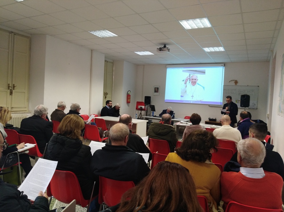 L’incontro si è concluso con la relazione di Beatrice Testadiferro che ha proposto alcune tracce di riflessione, partendo dal Magistero di Papa Francesco e da come è stato interpretato dai mezzi di comunicazione; proseguendo con i quotidiani e i giornali diocesani e infine delle parrocchie. Si è soffermata sulla Lumen Fidei, enciclica di Papa Francesco del 2013, scritta a meno di quattro mesi dalla sua elezione ed elaborata sulla base degli appunti del suo predecessore. Un accenno è stato dedicato alla sensibilità verso l’ecologia integrale che, della seconda enciclica di Papa Francesco Laudato sì, è un po’ il tema conduttore e che incorpora nella propria argomentazione i quattro principi proposti dal cap. IV dell’esortazione Evangelii Gaudium: “Il tempo è superiore allo spazio”, “l’unità è superiore al conflitto”, la realtà è superiore all’idea”, “il tutto è superiore alla parte”. I presenti hanno potuto sfogliare una raccolta di settimanali diocesani e del quotidiano Avvenire della prima metà del 2013 con articoli e immagini dedicate alle dimissioni di Papa Benedetto XVI e all’elezione di Papa Francesco. Sono state proiettate e commentate le pagine del settimanale della diocesi di Macerata, Emmaus e della diocesi di Jesi, Voce della Vallesina, di marzo 2013 per ripercorrere in che modo è stato presentato il nuovo pontefice. Una parte della relazione è stata dedicata a una riflessione su come i documenti e lo stile di Papa Francesco sono proposti nelle parrocchie con piccole strategie che permettono la diffusione dal basso di uno stile basato sulla leggerezza della gioia che accompagna senza costringere.