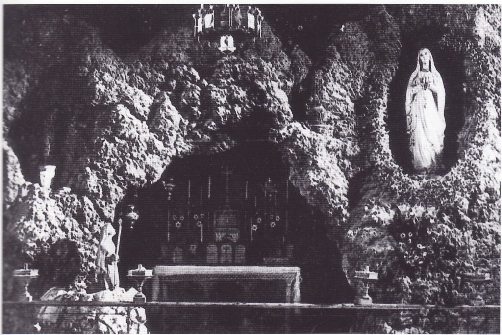 Dobbiamo risalire ai primi anni del 1900 per trovare i segni di una devozione nel riproporre la Grotta delle Apparizioni in alcune nostre chiese. Un primo esempio lo abbiamo a Ripatransone dove il 7 settembre 1905 il Vescovo Luigi Boschi, inaugurava la Cappella della Madonna di Lourdes nella chiesa di Santa Maria della Valle. La Grotta fu allestita da tale Luigi Campanelli di Acquaviva Picena su richiesta del Pievano Mons. Pasquale Loy. Si stava diffondendo il culto Eucaristico-Mariano, proprio nello spirito delle Apparizioni di Lourdes. Si deve in particolare, prima, ai sacerdoti ripani, poi, al Vescovo Mons. Ferri la diffusione nelle due diocesi di Ripatransone e di Montalto di questo culto. E sempre agli inizi del XX secolo sarà don Luigi Sciocchetti, pittore e scultore, fratello del più famoso don Francesco, a realizzare nella Chiesa della Madonna della Marina, al lato sinistro dell’altare maggiore una cappellina di vasta dimensione, con la Grotta di Lourdes. Nell’ultimo rifacimento della Chiesa, negli anni settanta, la Grotta di Lourdes fu demolita e le statue della Madonna e di Santa Bernardette furono poste in un altare laterale incastonate in una bella scultura opera di Aldo Sergiacomi di Offida. Della cappellina è stata salvata la mezza lunetta posta sopra il cancello di ingresso dipinta dallo stesso Sciocchetti e oggi murata sull’ultimo altare della navata sinistra dove è stato posto “l’Albo dei caduti civili del Mare”.