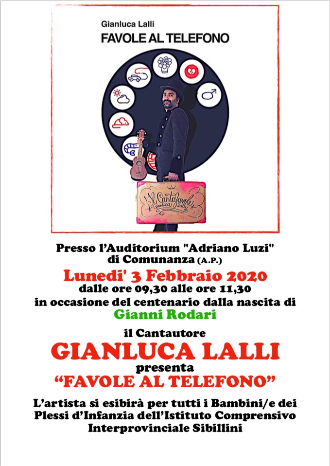 Questo, per la presentazione del disco “Favole al telefono” del cantautore, Gianluca Lalli, con la messa in gioco di tutte le Scuole dell’Infanzia, appartenenti al medesimo Istituto Comprensivo.