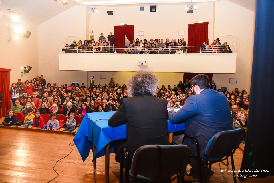 L’evento, organizzato dall’ufficio diocesano del Sovvenire, ha riscosso un notevole successo: oltre 300 persone tra la sala, la platea e all’esterno del teatro, dove molte persone, che non sono riusciti ad entrare per motivi di sicurezza, hanno atteso la fine dell’incontro per raggiungere l’artista e farsi autografare il libro.