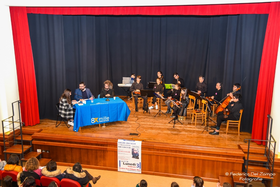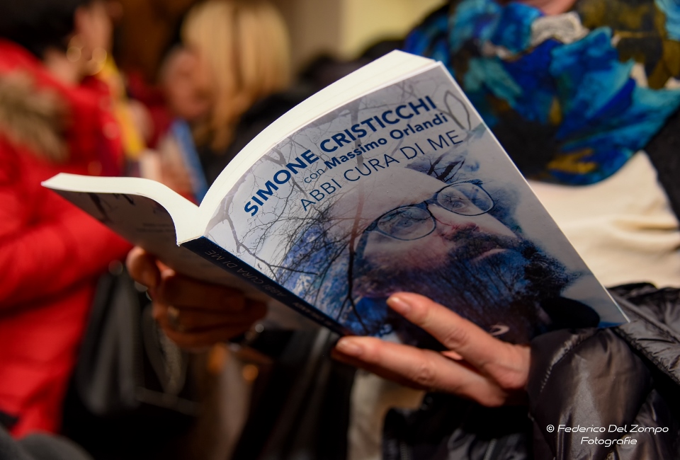 SAN BENEDETTO DEL TRONTO – Fa il pieno di pubblico e di consensi Simone Cristicchi, l’artista romano, vincitore di numerosi premi, tra cui spicca l’edizione del Festival di Sanremo 2007 e attuale Direttore del Teatro Stabile d’Abruzzo, intervenuto lunedì alle ore 17.30 presso il Teatro San Filippo Neri per la presentazione del suo libro “Abbi cura di me”, scritto a quattro mani con il giornalista e scrittore Massimo Orlandi.