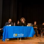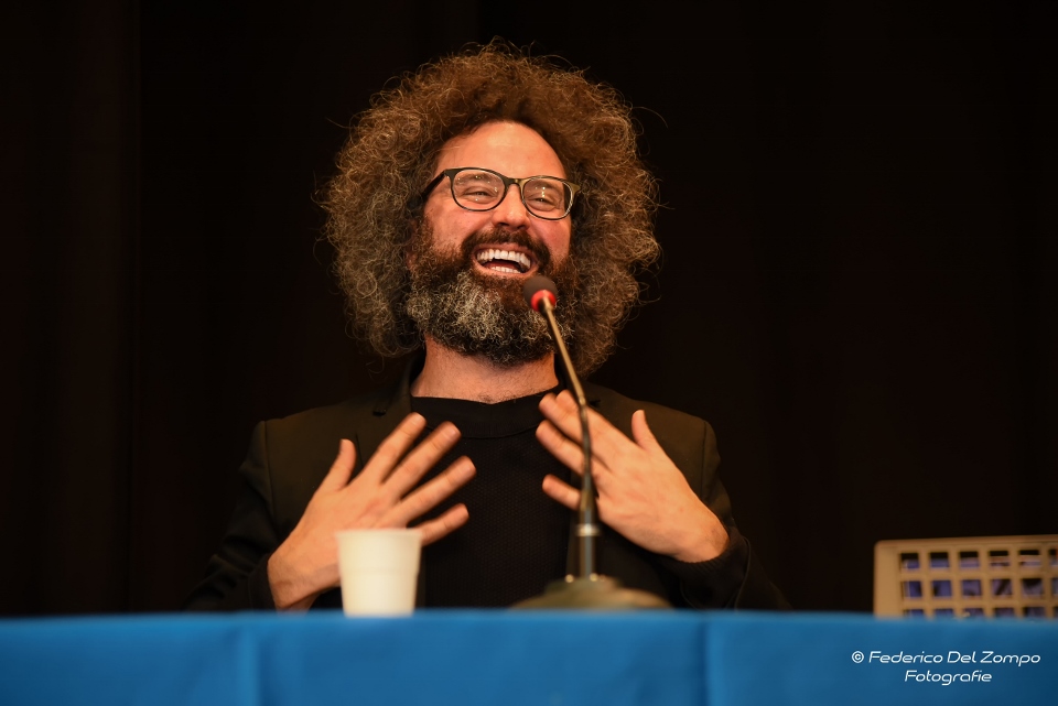 L’evento ha visto anche la partecipazione attiva dei ragazzi che frequentano il Corso di Giornalismo organizzato da “L’Ancora”. I corsisti hanno avuto l’opportunità di salire sul palco e fare da vicino alcune domande all’illustre ospite, il quale, stimolato dalle loro considerazioni genuine ed allo stesso tempo profonde, ha dato vita a momenti di ilarità , ma anche di commozione e di riflessione. Riportiamo di seguito le domande integrali degli aspiranti giornalisti ed una sintesi delle risposte dell’artista romano.
