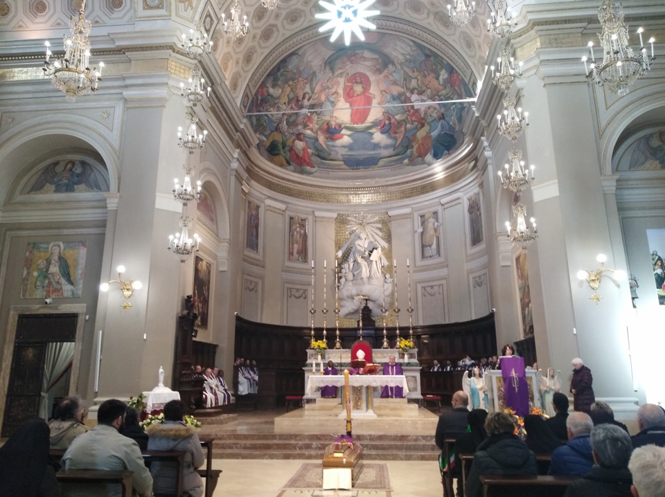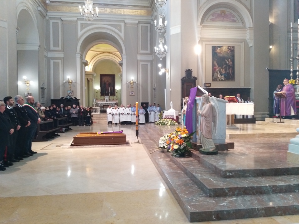 Don Antonio in questa fede ha consacrato la sua vita, l’ha consacrata da cristiano, l’ha consacrata da sacerdote, l’ha donata per il bene del popolo di Dio e per amore del Signore. E noi siamo qui a pregare perché questa speranza che ha guidato la vita di don Antonio trovi il suo adempimento nell’amore e nella comunione nel Signore. E mentre preghiamo il Signore per lui, dobbiamo anche pregare che le nostre vite siano orientate a questo orizzonte, a questo termine, quella vita e comunione con Dio che solo Lui ci può donare e che noi stiamo già vivendo sì nella nostra povertà e nei nostri limiti di ogni giorno, ma anche con la fede. La vita avrà infatti il suo compimento finale soltanto quando il Signore ci chiamerà a sé. E allora in questa fede, in questa speranza, don Antonio ha vissuto tutto il suo sacerdozio e anche la sua malattia e vorrei lasciare a lui la possibilità di un’ultima omelia in questa concattedrale, che lui ha guidato per molti anni come parroco. Nel suo testamento spirituale che ha lasciato e che ha scritto il 2 febbraio del 2005, quindi esattamente quindici anni fa, scrive: “Vorrei che questo testamento fosse come un’eredità di un pensiero o sentimento di fede e speranza, per tutto. Un povero ricordo spirituale da parte mia e insieme una doverosa richiesta di perdono, dettati sempre da affetto e benevolenza, aldilà di ogni asprezza, intransigenza e impulsività passata e accompagnati nonostante tutto da gratitudine e stima e avvalorato come una preghiera. Proprio in occasione della Presentazione di Gesù al Tempio, nella speranza e nell’auspicio che alla mia ultima ora, sia anche io presentato al Padre nel tempio della Sua Gloria come Gesù per le mani di Maria santissima e di san Giuseppe, ripetendo gioiosamente col santo vecchio Simeone: “Ora Signore, lascia pure che me ne vada in pace da questo mondo per vedere e godere Te e Cristo Tuo figlio, luce e salvezza di tutti i popoli, anche di questo tempo, dopo averlo visto e seguito già nella fede e atteso per tanti anni nella speranza e averlo pure additato per Tua grazia agli altri, certo con tanti limiti e incoerenze, ma sempre nella gioia, nello stupore e nella gratitudine per essere stato fatto strumento e portatore della Tua Parola di verità e di vita, della Tua salvezza e del Tuo perdono attraverso il ministero sacerdotale, che a tutt’oggi mi ha dato la possibilità, nonostante la mia indegnità di presentare agli uomini il Tuo sacrificio redentore”. Con queste parole don Antonio ci ha dato la risposta a quella domanda da cui siamo partiti: “Cosa possiamo sperare di fronte alla morte?” e don Antonio ci manifesta tutta la sua speranza e la sua fede, invitandoci a imitarlo. Ci sta parlando da sacerdote, non solo di sé, ma anche della vita di fede che deve guidare ciascuno di noi. Poi don Antonio ringrazia dettagliatamente e singolarmente tutti: vescovi, sacerdoti, confratelli, suore, famigliari, laici che ha incontrato durante la sua vita e conclude: “Nella pienezza delle mie facoltà, fino all’ultimo respiro, anche se sarò privo di conoscenza, intendo riaffermare dinanzi a Dio e alla Chiesa e a quanti mi furono affidati, la mia fede in tutte le priorità che la Chiesa cattolica propone a credere”. È l’atto di fede con il quale si è consegnato a Dio e ha risposto anche lui il suo “Eccomi”. Poi dice ancora: “Intendo riaffermare la mia speranza nella Misericordia di Dio e il mio filiale abbandono tra le braccia materne di Maria perché a coronamento di tante grazie avute in vita possa pure ottenere il grande dono della perseveranza finale, per cantare in eterno le lodi di Colui che anche in me ha aperto cose grandi, venendo in soccorso del Suo povero servo e ricordandosi della Sua Misericordia”. È la confidenza della bontà di Dio che viviamo ogni giorno e che viviamo in modo più particolare quando ci prepariamo ad incontrare in modo definitivo Nostro Signore. Inoltre don Antonio aggiunge: “Intendo confermare il mio desiderio, realizzato purtroppo così poco in vita di amare fino all’estremo e per tutta l’eternità, Dio con tutto il cuore sopra ogni cosa e per amore Suo anche il prossimo, specialmente chi non avessi considerato o trattato come prossimo, nel mio cuore e non mi avesse sentito a sua volta vicino come padre, amico e pastore”. Non possiamo che rispondere con la preghiera a questa sua richiesta di considerare anche con la benevolenza ciò che non è riuscito a fare e forse nonostante la sua buona volontà, affinché il Signore la Sua Misericordia sia abbondante coprendo anche quei limiti umani che la natura ha consegnato anche al suo ministero. Infine don Antonio afferma che il Signore, che è Padre e che tutto fa e dispone sempre per il nostro maggior bene: “Nelle Tue mani affido la mia restante vita” e ora dice: “Affido tutto me stesso, rimettendo nelle Sue mani anche la mia morte, come, dove e quando Lui vorrà, ripetendo con la Chiesa, al compimento della mia giornata terrena: “In manus tuas commendo spiritum meum”, nelle Tue mani Signore, affido il mio spirito. Anche noi questa mattina insieme a lui diciamo, “Nelle tue mani Signore affidiamo il suo spirito”, accoglilo nella benevolenza e sii per lui il compimento di quella speranza che lo ha guidato in tutta la sua vita”.