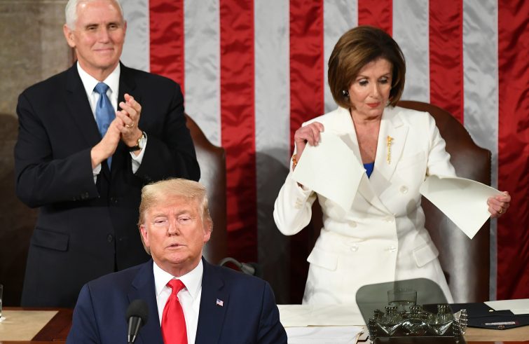 Infine, il colpo di scena: appena Trump conclude con “God bless America”, Nancy Pelosi alle sue spalle strappa, in diretta e con decisione, il discorso presidenziale, un gesto che sigla la profonda e radicale divisione del Paese, soprattutto tra le istituzioni che lo governano. Uno strappo nella stessa Camera che si è rifiutata di ascoltare testimoni chiave sul caso Trump-Ucraina e che domani voterà sull’impeachment del presidente.