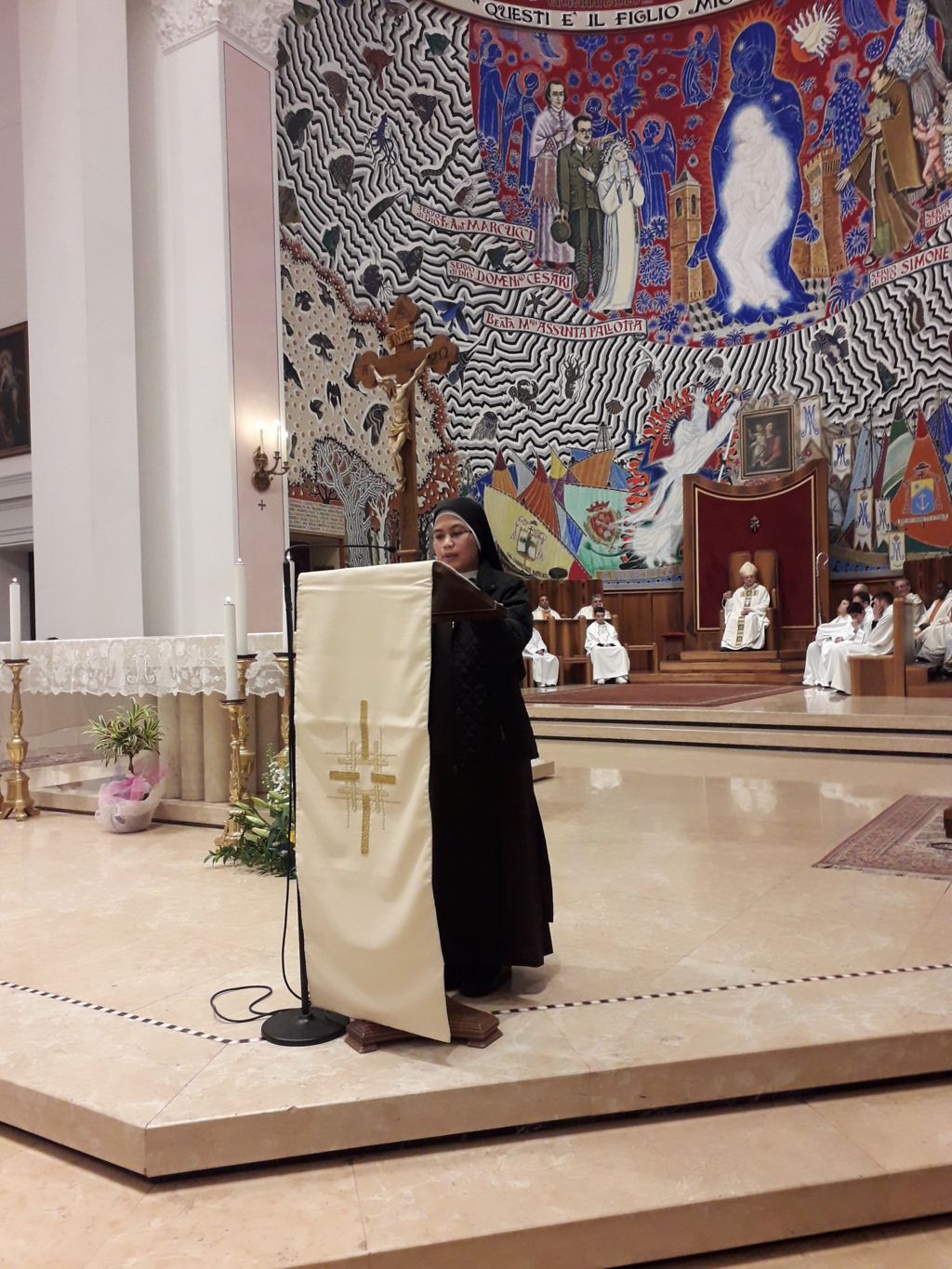 Poi è stato il turno di Suor Perly Gajo di Santa Teresa Benedetta della Croce, nata a Mindanao, nell’isola più grnde delle Filippine, da una famiglia numerosa, con undici fratelli. La consacrata ha raccontato di come la sua vocazione sia avvenuta in età molto precoce, ma, all’età di 16 anni, dopo la morte del padre, nel suo cuore quel desiderio è stato competamente cancellato: era arrabiata con Dio per aver preso suo padre così presto, non frequetava più la parrocchia e sentiva un grande vuoto dentro di sè. È stato allora che ha davvero incontrato Gesù: “Un pò alla volta ho iniziato ad aprire il mio cuore ferito a Gesù. In un primo momento mi sentivo in colpa per quello che avevo fatto e per le parole che avevo detto a Gesù. Poi, grazie al mio parroco, mi sono confessata ed ho ricevuto la Comunione. Ogni settimana, dopo la scuola, mi ritrovavo sempre in parrocchia per la formazione dei più giovani e non avevo più tempo per stare in casa, perchè arrivavo e partivo. Ho capito che non potevo più aspettare: il mio cuore ardeva dal desiderio di entrare in convento e staccarmi dal luogo in cui mi trovavo. Oggi posso dire di essere felice: ogni giorno ho sempre la gioia nel cuore di svegliarmi, sorridere e servire.”