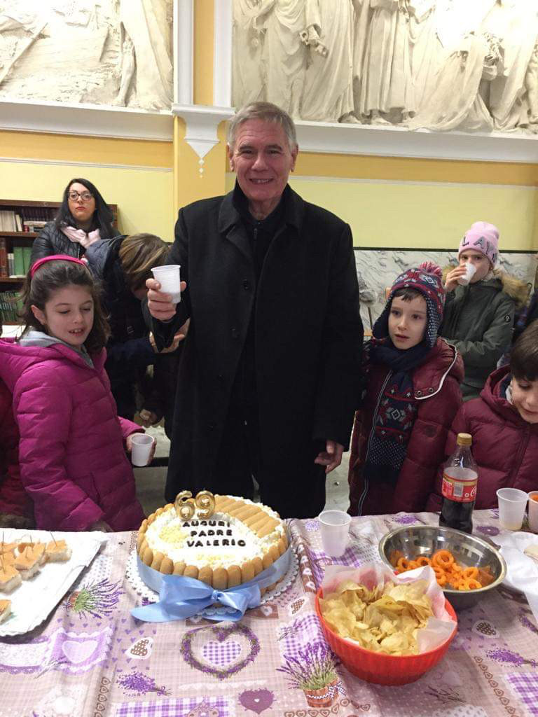 Al termine della sentita celebrazione, nel salone parrocchiale dei Sacramentini, è stato allestito un ricco rinfresco aperto a tutta l’assemblea, grazie alle catechiste Debora e Roberta e ai genitori dei bambini di seconda elementare. Questi ultimi, proprio nell’anno catechistico in corso, stanno affrontando il tema del battesimo per conoscerlo più a fondo. A sorprendere tutti, nel salone affollato, un canto si è alzato all’improvviso ed una bellissima torta con le candeline da parte di tutti i catechisti si fa spazio tra le persone: “Tanti auguri a te…”. Quale migliore occasione per festeggiare a sorpresa anche il compleanno del Parroco Padre Valerio Valeri che il 10 gennaio scorso ha compiuto 69 anni!
