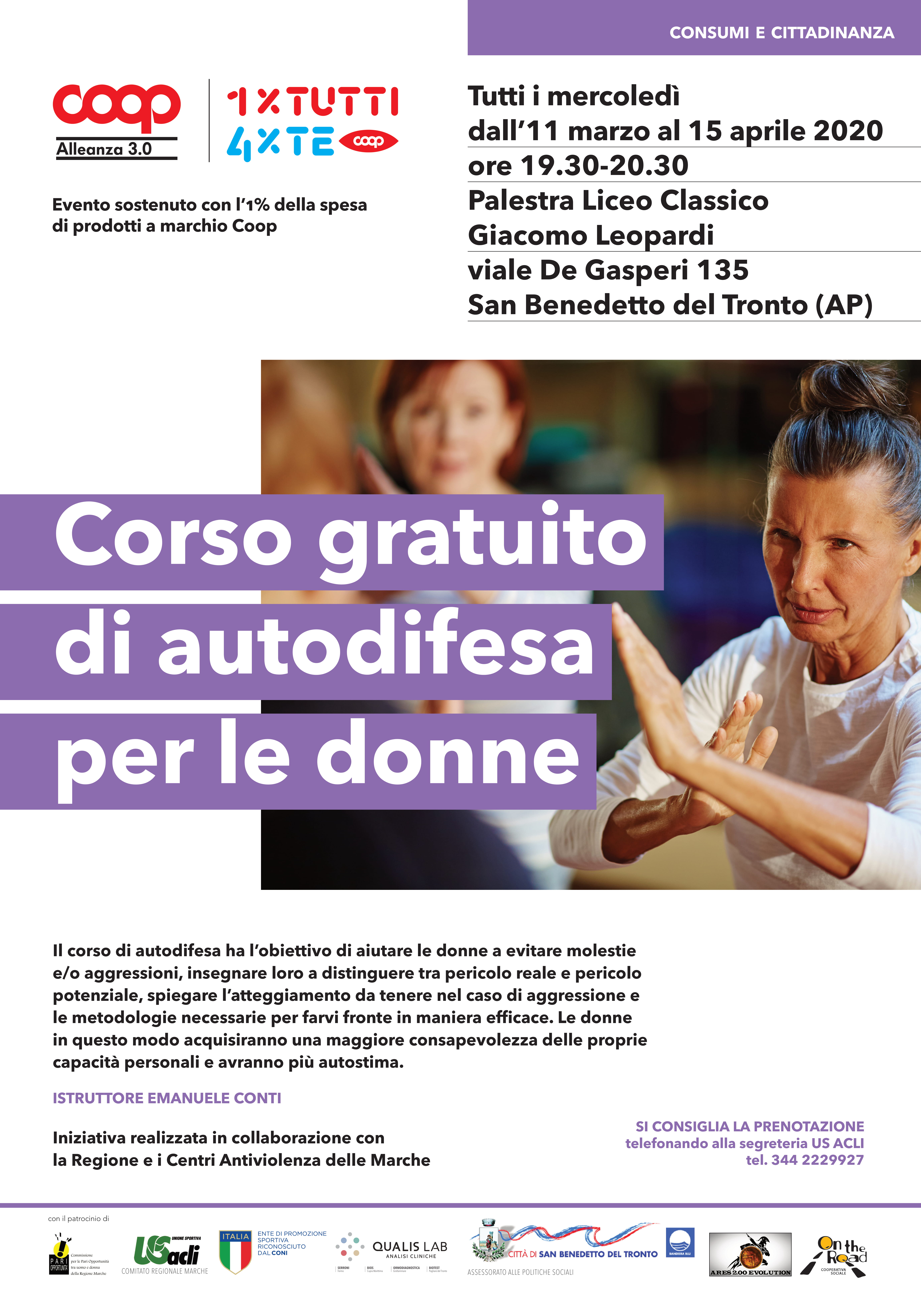 SAN BENEDETTO DEL TRONTO – L’11 marzo prenderà il via una nuova edizione del Corso gratuito di autodifesa per donne che si svolgerà presso la palestra del Liceo classico.