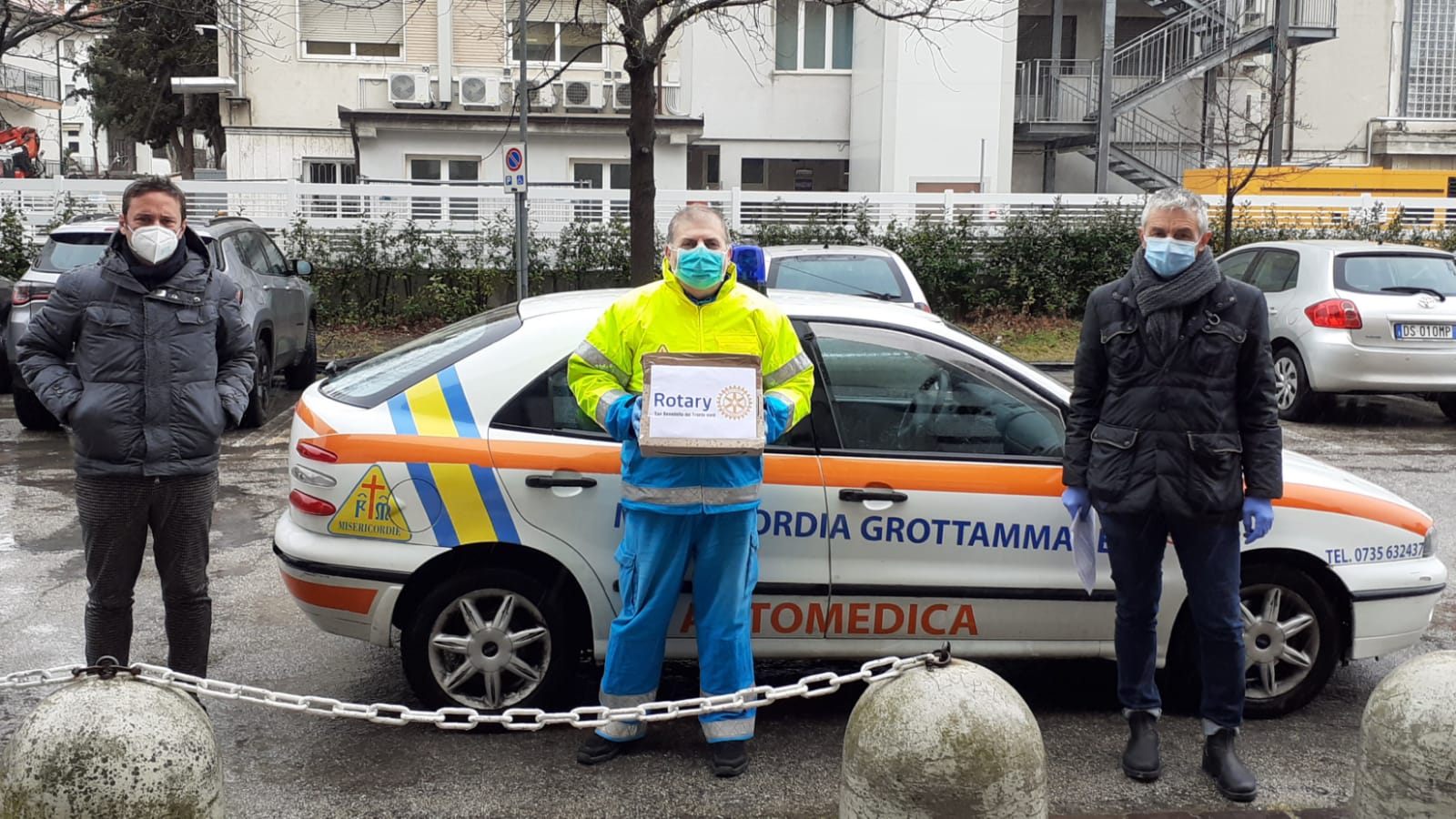 Il Rotary Club, sensibile alla problematica della carenza di maschere chirurgiche di protezione per i volontari soccorritori del servizio ambulanza della Misericordia, per il tramite dell’arch. Luigi Anelli e del dott. Mario Di Buo’, il Club ha donato loro 200 maschere chirurgiche di protezione, che ha ringraziato di cuore l’associazione benefattrice.