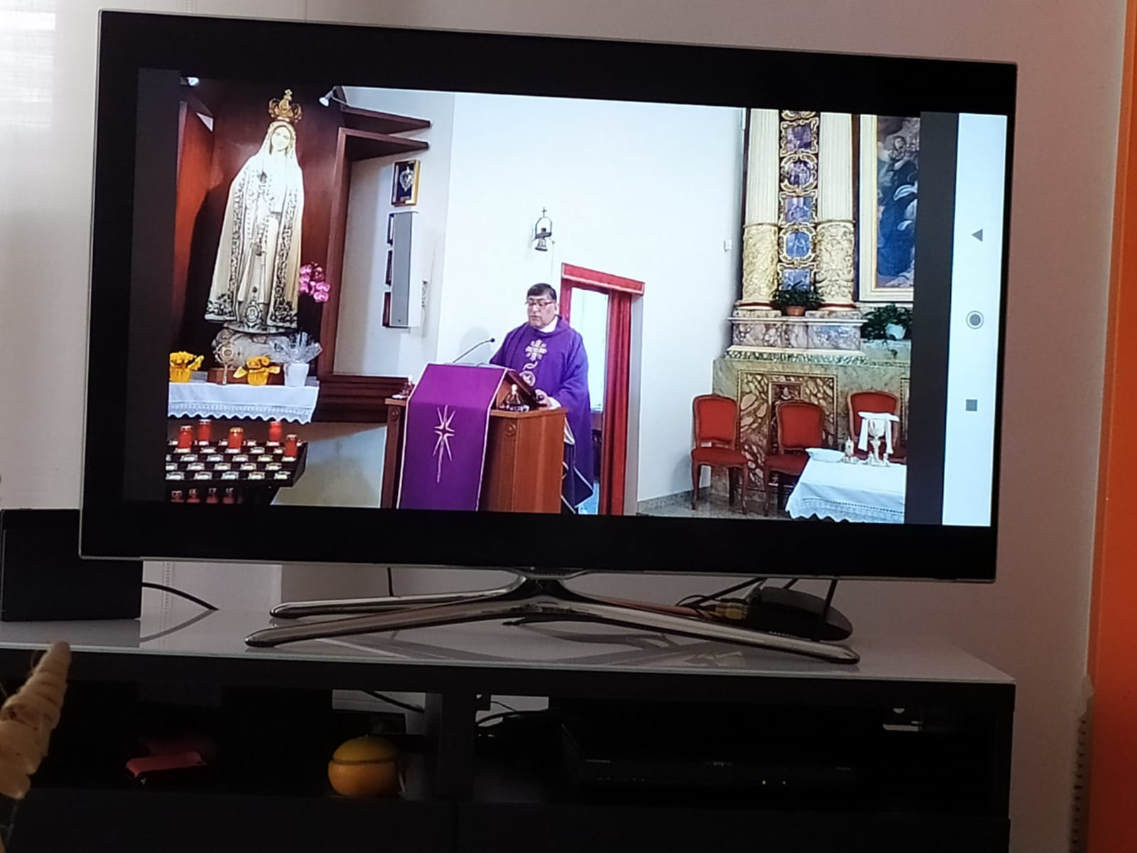 Molti parrocchiani, come detto anche prima, si sono uniti alla celebrazione dalla propria casa e tanti hanno poi voluto condividere le immagini di come la famiglia ha preparato uno spazio adatto, con dei fiori, con un Crocifisso o un’immagine sacra, per assistere alla messa da uno smart TV, un tablet, un computer o uno smartphone.