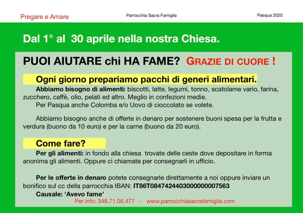 Tornano così le parole dell’evangelista Matteo: estrapolate da un passaggio che, letto nella sua interezza, ha dei forti rimandi anche all’attualità, con l’emergenza-Coronavirus che si sta trasformando di giorno in giorno in emergenza-sociale, visto che cresce il numero di quanti non riescono più ad avere i soldi necessari all’acquisto dei beni essenziali, come appunto il cibo.