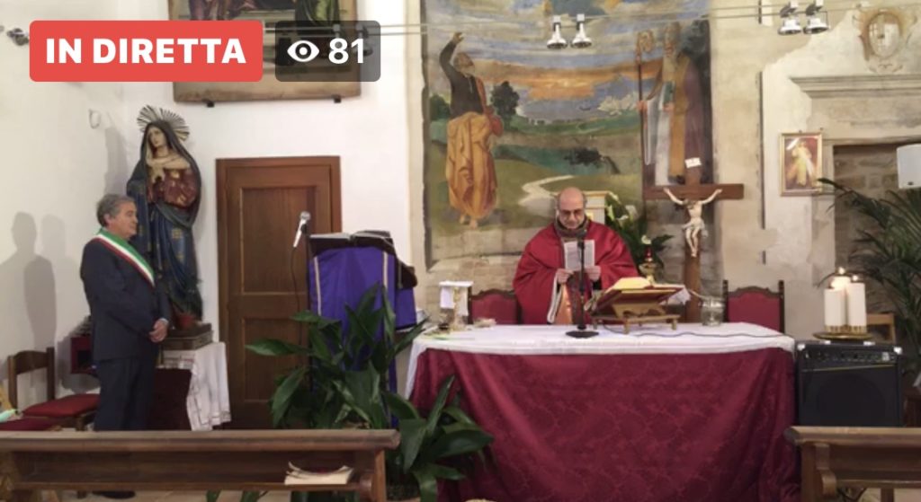 La celebrazione aveva avuto inizio con la benedizione virtuale delle Palme (molto attesa dai fedeli chiusi nelle loro case) e, dopo un accorato appello del Sindaco di rispettare rigorosamente tutte le disposizioni vigenti, si è conclusa con l’uscita del Sacramento, sostenuto dal celebrante, per la benedizione di alcune del paese.