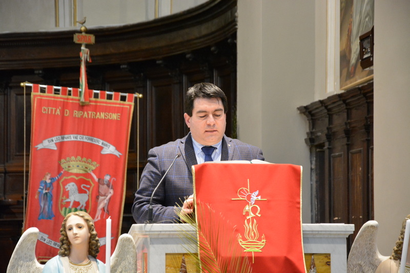 Con queste parole Don Nicola Spinozzi, Parroco delle Parrocchie del Centro Storico di Ripatransone, ha aperto la Celebrazione Eucaristica di Domenica 5 Aprile, al Duomo della Città, in cui alla presenza, oltre che degli altri Parroci del Comune, del Sindaco Ing. Alessandro Lucciarini De Vincenzi e del Maresciallo Maurizio Drago, Comandante della locale Stazione dei Carabinieri ed accompagnato dall’Appuntato Stefano Spagnoli,