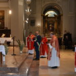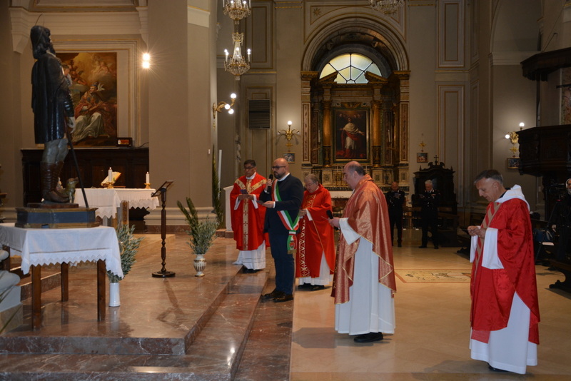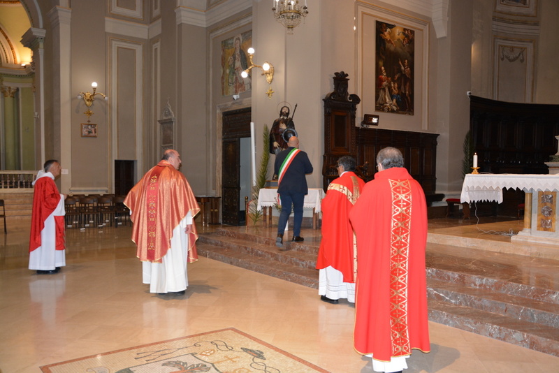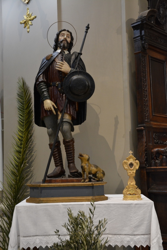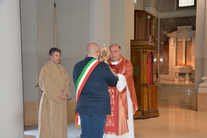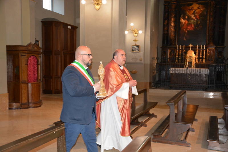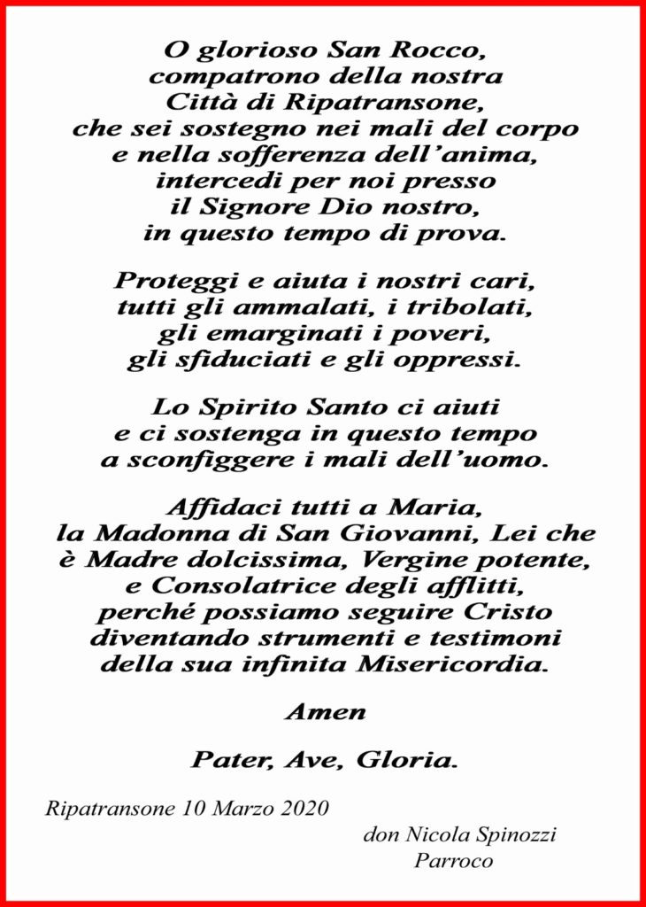 Al termine della Celebrazione Don Nicola, accompagnato dal Sindaco Lucciarini, ha accolto in Duomo la reliquia di San Rocco portata in Chiesa dal Priore della Confraternita del Sacro Cuore di Gesù (detta dei Sacconi), Roberto Morresi, che da sempre gestisce la Chiesa Comunale dedicata al Santo di Montpellier e che è proprietaria della Statua del taumaturgo ivi custodita ed ora ospitata, in questo tempo di epidemia da Corona virus, nel Duomo di Ripatransone. È proprio ai piedi di questa Statua che il Sindaco ha letto, a nome di tutti i Ripani, la preghiera composta da Don Nicola con cui si è rinnovato l’affidamento della Città a questo Santo.