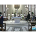 Al termine della funzione il parroco ha benedetto i fedeli collegati con la tv o in streaming e l’intera città con la reliquia di San Basso.