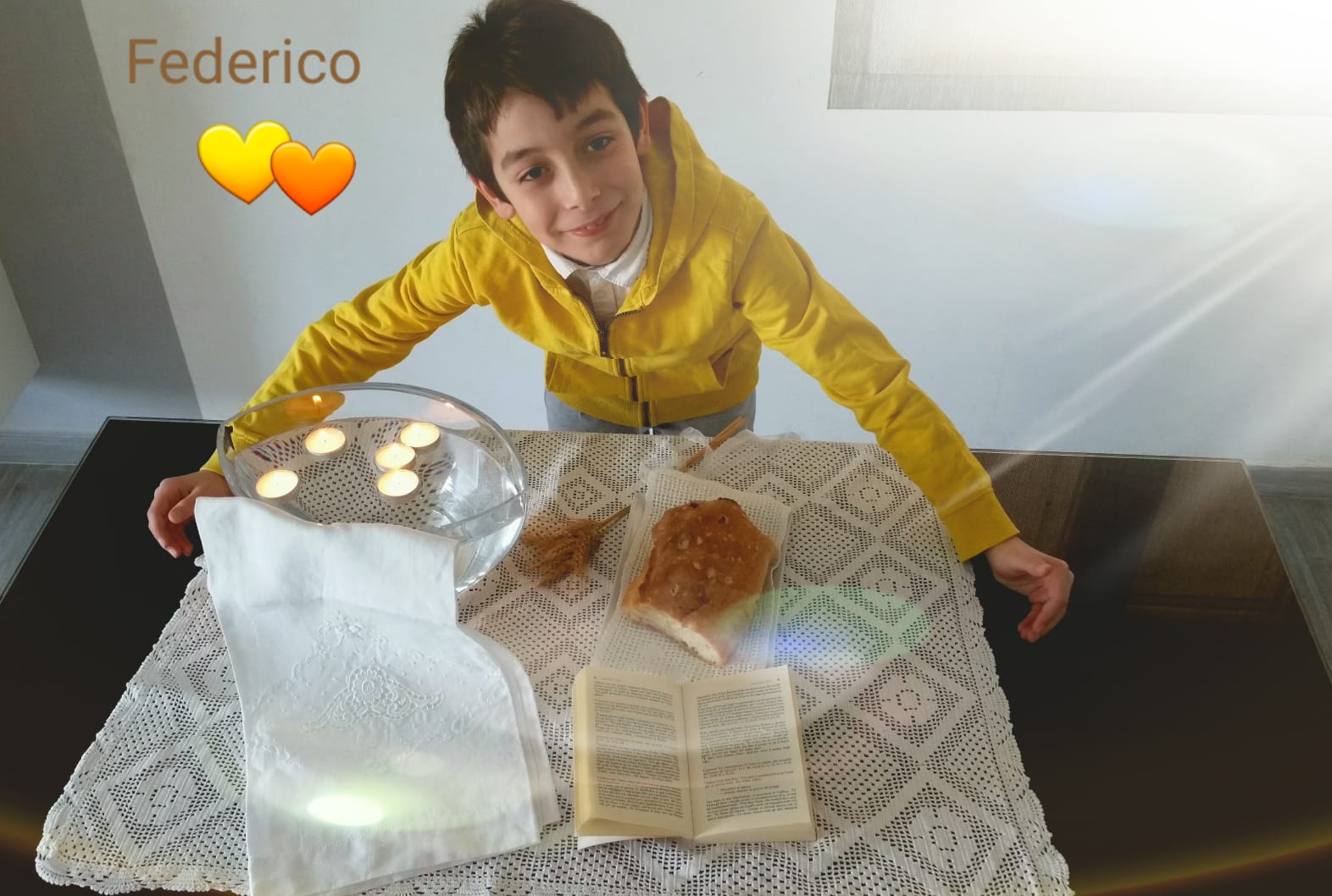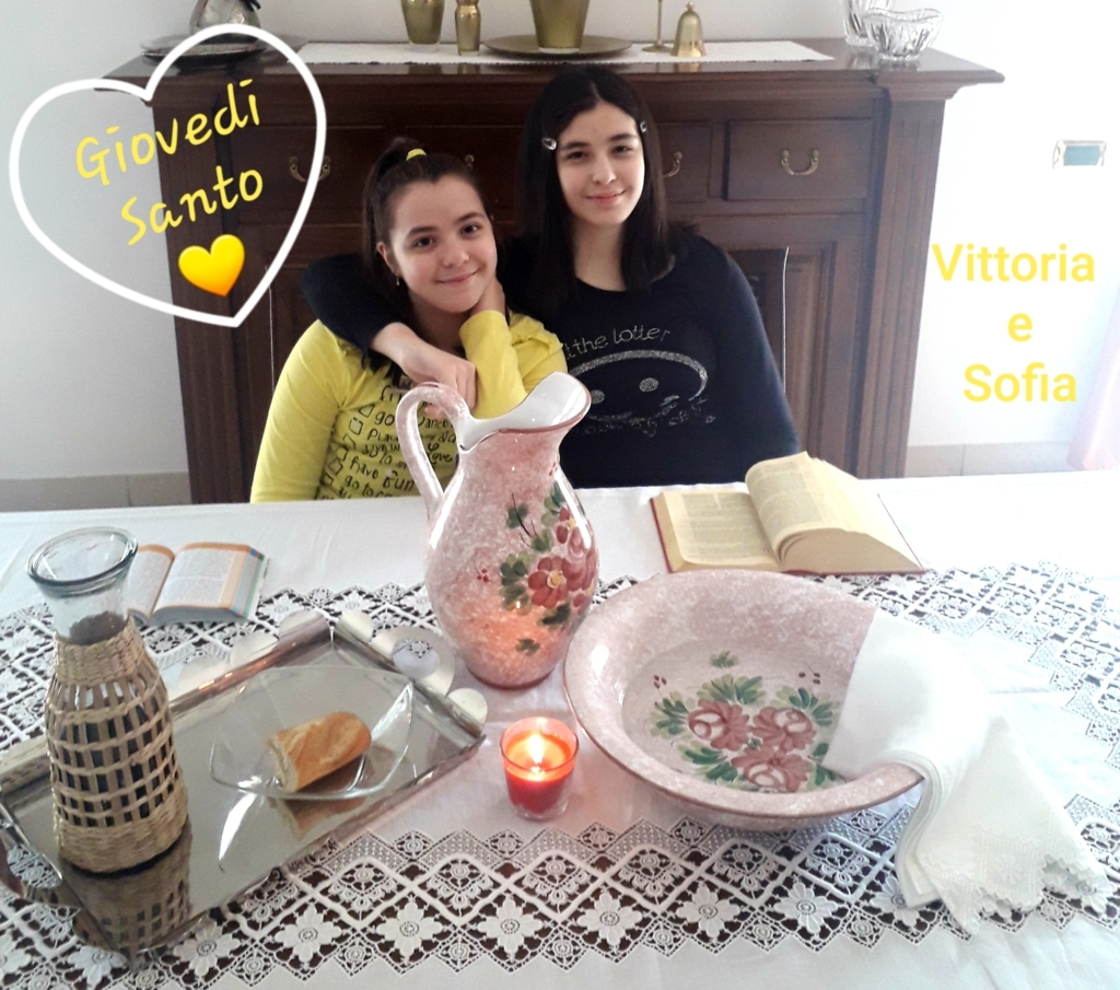 Il Giovedì Santo le famiglie sono state invitate a coprire un tavolo con una tovaglia bianca in memoria dell’ultima cena del Signore con gli Apostoli: vi sono stati posti sopra una brocca d’acqua o un catino, insieme ad un asciugamano, per ricordare la lavanda dei piedi ed infine sono stati aggiunti un vassoio con pane e vino ed una candela per commemorare l’istituzione dell’Eucarestia. Tutti riuniti intorno al tavolo così allestito, i genitori hanno letto uno dei passi del Vangelo che riguardano l’ultima cena, hanno spiegato ai figli i segni presenti sul tavolo ed hanno pregato insieme, come fece Gesù nell’orto degli Ulivi.