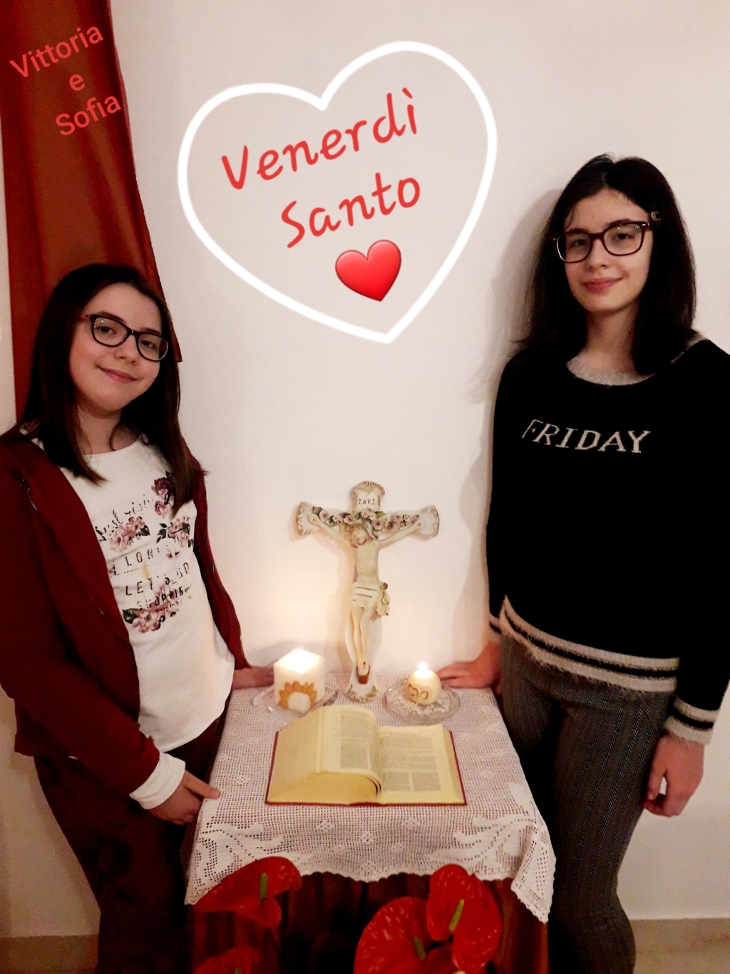 Il Venerdì ed il Sabato Santo, invece, per ricordare la crocifissione e morte di Gesù, molti hanno creato in un angolo della casa un ambiente carino e ben visibile con un crocifisso e due lumini accesi: tutti i familiari si sono riuniti davanti al crocifisso così preparato, hanno letto il brano di Giovanni inerente la passione di Gesù, hanno proceduto ad uno ad uno al bacio del crocifisso ed hanno pregato insieme. In particolare il Sabato alcuni hanno fatto anche una piccola celebrazione penitenziale, chiedendo al Signore perdono per i propri peccati.