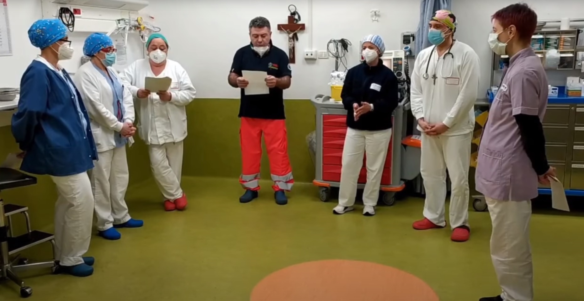Proprio nei giorni in cui abbiamo celebrato la Festa della Liberazione e parlato molto di libertà, è stata una bella “lezione” pregare insieme a coloro che con tanta dedizione e amore stanno lavorando per salvare le nostre vite e ridonarci le nostre libertà…la libertà di respirare ad esempio, che forse avevamo dimenticato. È stata un’occasione per conoscere un po’ meglio il valore e il significato di “libertà”, la cui conoscenza profonda appartiene solo a Dio. Una libertà che vuol dire fratellanza e solidarietà, perché non si può essere liberi da soli. Una libertà che abbiamo scoperto essere dono reciproco, perché affinché ciascuno posso gustare la propria libertà è necessario anche che ciascuno lotti per la libertà degli altri. Una libertà che non può prescindere dall’amore e dal rispetto dell’ “altro”, del nostro prossimo.