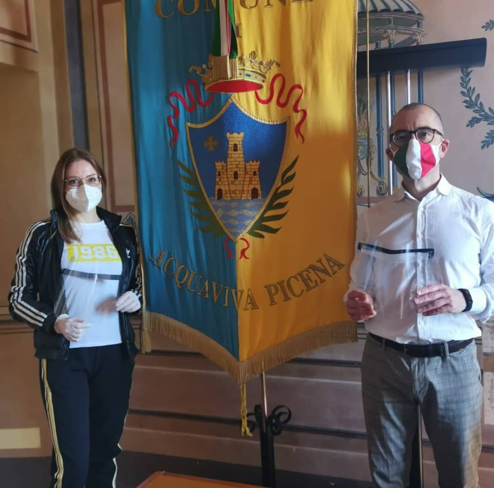 ACQUAVIVA PICENA – La Serigrafia G.M. di Giudici Maurizio di Acquaviva Picena ha donato, lunedì 4 maggio, quaranta visiere al Comune. Le parole del sindaco Rosetti: “Sinergia e collaborazione tra pubblico e privato. Un grande ringraziamento da parte di tutta l’Amministrazione Comunale alla Serigrafia G.M. di Giudici Maurizio, di Acquaviva Picena che, in un momento di emergenza e di adeguamento delle attività, questa mattina ha donato quaranta visiere al Comune”.