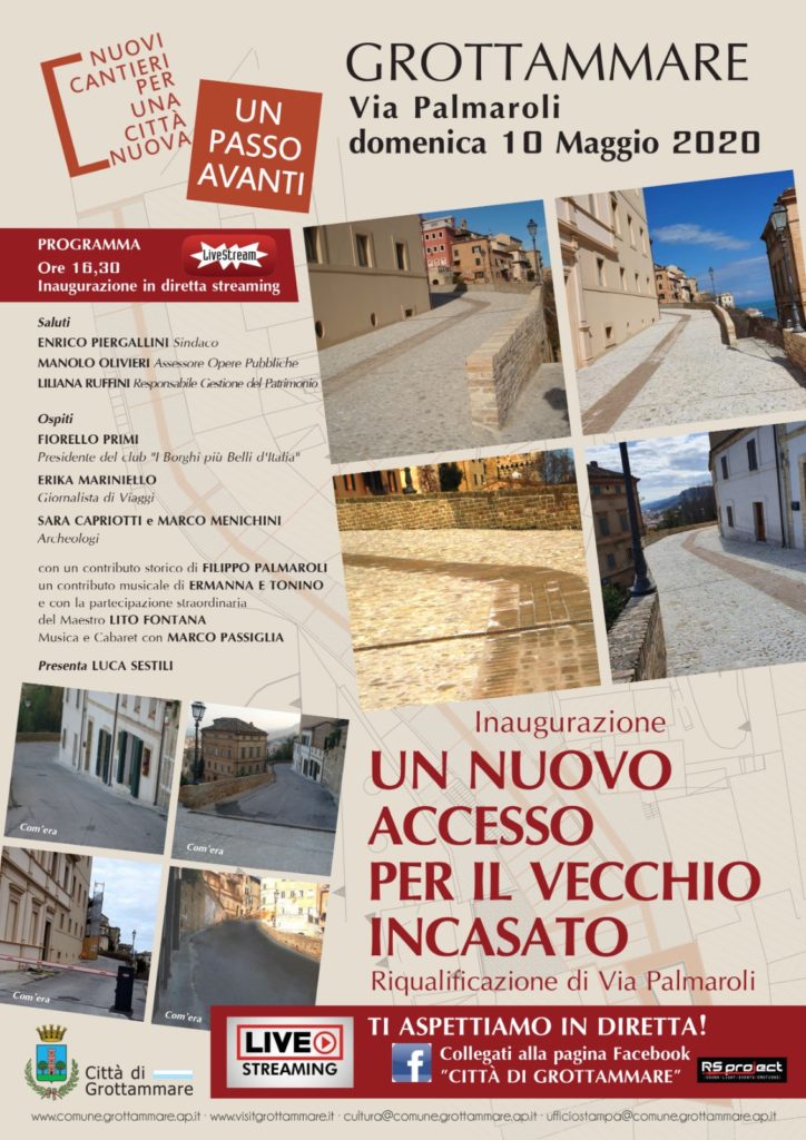 L’evento, annunciato nei giorni scorsi per domenica prossima 10 maggio, saluta il completamento dell’opera di riqualificazione della strada di accesso al vecchio incasato, che ha restituito alla via Palmaroli le atmosfere di un tempo. L’inaugurazione sarà trasmessa in diretta sulla pagina Facebook “Città di Grottammare”, a partire dalle 16.30.
