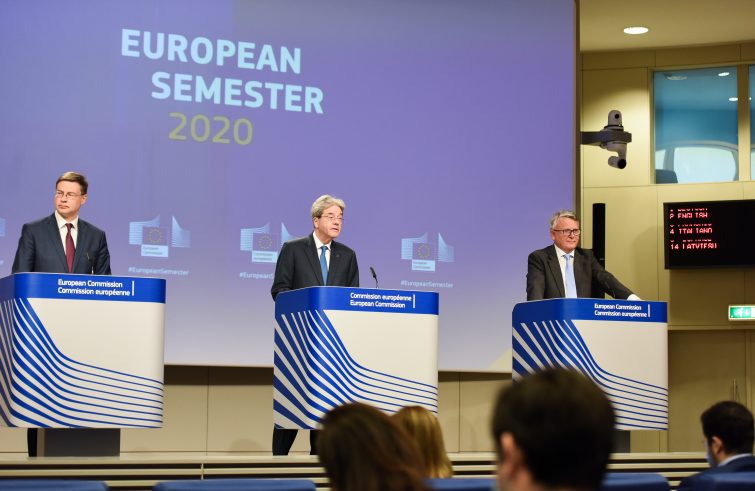 “La pandemia di coronavirus e le necessarie misure di contenimento hanno inferto un duro colpo alle economie europee”: parole di Paolo Gentiloni. “Come lo schianto di un asteroide, il coronavirus ha scavato un cratere nell’economia Ue”, rincara il collega commissario Valdis Dombrovskis. Sono all’insegna della preoccupazione le “raccomandazioni specifiche per Paese” nell’ambito del Semestre economico (ciclo di programmazione economica e finanziaria) fornite il 20 maggio dall’esecutivo di Bruxelles. Il quadro è fosco, la recessione “mondiale”: per questa ragione la stessa Commissione Ue allenta la cinghia e fornisce indicazioni “qualitative” agli Stati Ue, evitando di fare le pulci “quantitative” sugli sfondamenti di deficit e debito. Ci sarà tempo per rientrare nei parametri, per ora nessuna procedura d’infrazione, ma tanti incoraggiamenti a investire denaro pubblico e a lenire le ferite sociali dovute alla disoccupazione crescente.