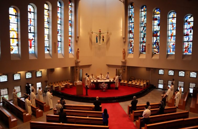 Tokyo – Mentre il Giappone tirava un sospiro di sollievo per l’annuncio della prossima revoca dello stato di emergenza in 39 delle 47 Prefetture, la sesta domenica di Pasqua offriva ulteriore motivo di gioia alla comunità cattolica della diocesi di Fukuoka dove nella omonima capitale, proprio alle 14.00 del 17 maggio, nella cattedrale di Daimyomachi intitolata a Nostra Signora della Vittoria, con una liturgia eucaristica a numero chiuso a causa del nuovo corinavirus, si svolgeva la cerimonia di insediamento del nuovo vescovo, monsignor Joseph Maria Abella.