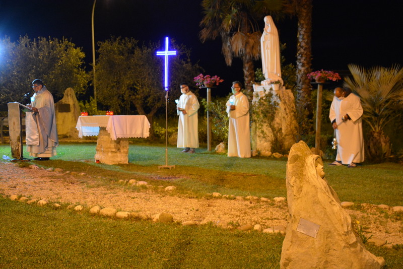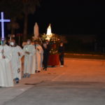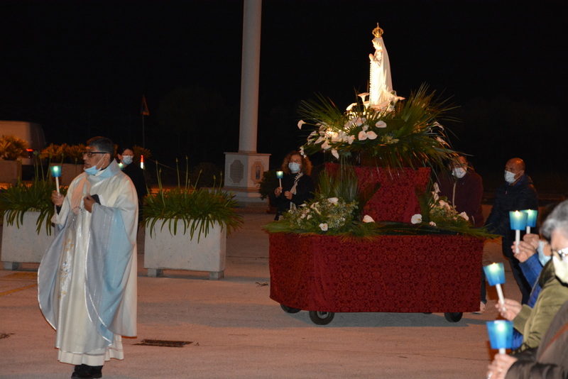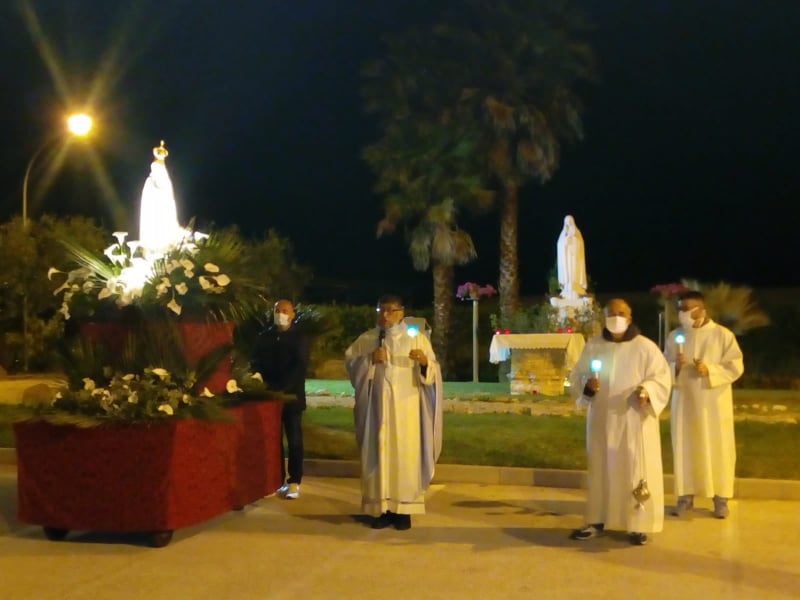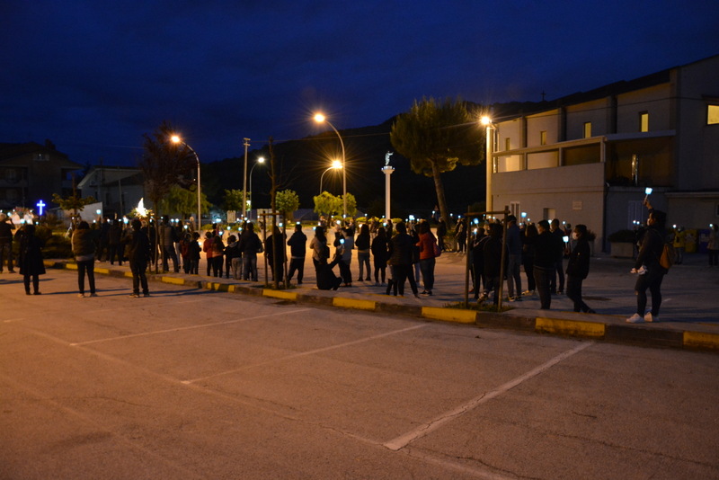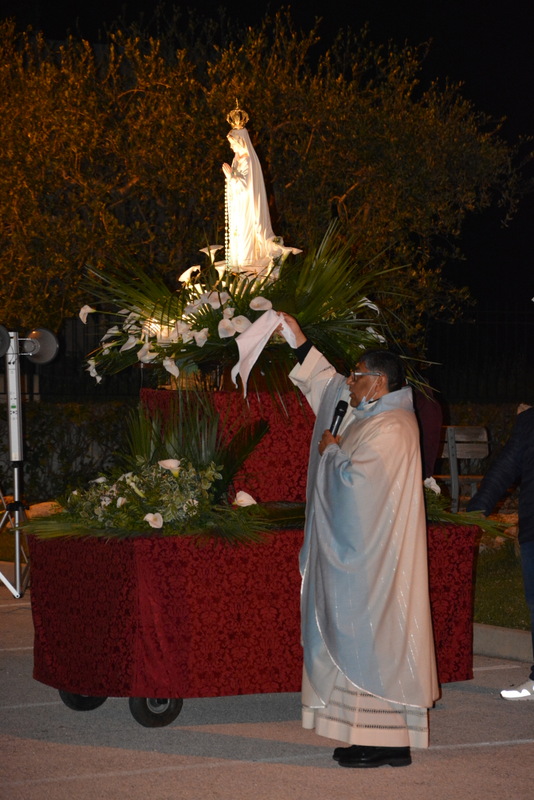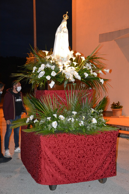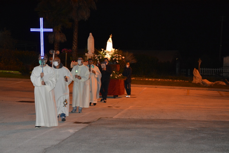 Al termine del Rosario si è avviata, poi, la Fiaccolata con l’Immagine Processionale custodita dalla Parrocchia. Per le normative in vigore che attualmente regolano la partecipazione dei fedeli alle Cerimonie religiose, i Parrocchiani non hanno potuto seguire l’Immagine in processione ma hanno seguito il suo passaggio nel Piazzale adiacente alla Chiesa, un po’ come avviene nel Santuario di Fatima in Portogallo.
