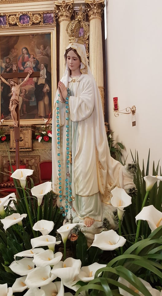 In questo anno 2020, segnato dall’Epidemia di Corona Virus, la Comunità non ha potuto vivere tutti i vari appuntamenti che tradizionalmente segnano il Mese di Maggio quali la Novena in Onore della Madonna di Fatima dal 9 al 13, i festeggiamenti in suo onore nella 2a Domenica e la solenne Festa del 13 Maggio in occasione dell’Anniversario delle Apparizioni in Cova d’Iria. Questo a causa delle varie limitazioni negli spostamenti previste dalle normative Nazionali e Regionali per contrastare il contagio e a causa del divieto per i fedeli di partecipare alle Celebrazioni religiose in Chiesa che è rimasto in vigore fino al 17 Maggio. Ora che, seppur con tante nuove attenzioni, i fedeli sono potuti tornare a partecipare alle Celebrazioni Eucaristiche ed alle Manifestazioni Religiose, la Comunità ha voluto rendere tutti gli onori alla propria Patrona in occasione della Chiusura del Mese a Lei dedicato.